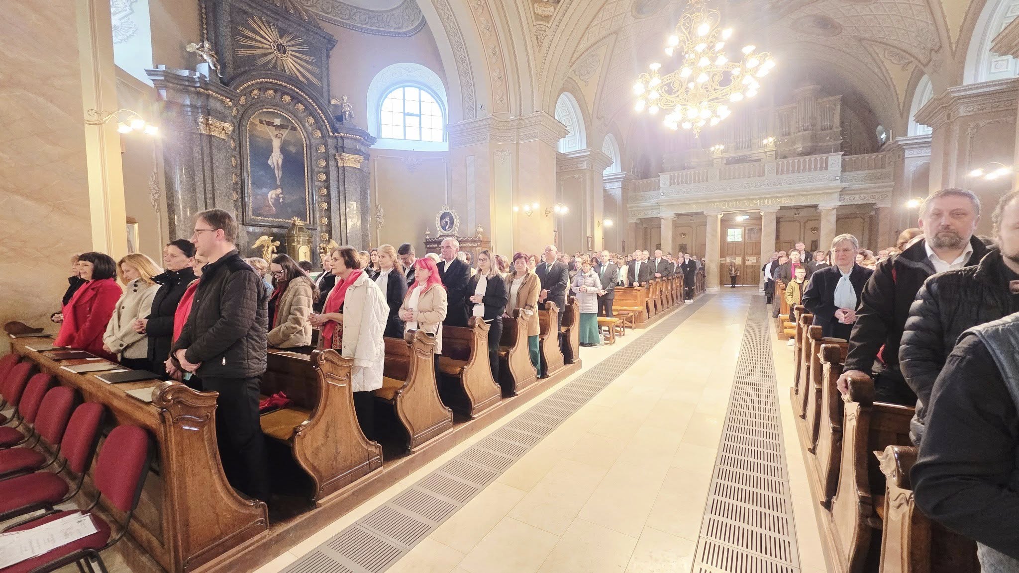 A püspök atya a hűség fontosságát is hangsúlyozta, példaként állítva Lukácsot, aki Szent Pál apostol mellett mindvégig kitartott. A szolgálat nem mindig könnyű, néha hosszú próbák, fáradt hangok, hideg templomok és korai vasárnapok kísérik, de az Úr nem hibátlan teljesítményt, hanem hűséget és szeretetet kér. A főpásztor párhuzamot vont az evangélium szavaival is, ahol Jézus 72 tanítványt küldött ki a világba. Nem tudósokat és prédikátorokat, hanem egyszerű embereket, akik vállalták az örömhír továbbadását. Ti is ilyen tanítványok vagytok – bíztatta a püspök a kórusokat –, amikor éneketekkel örömöt és hitet visztek az emberek közé, a templomban, egy esküvőn vagy éppen temetésen.