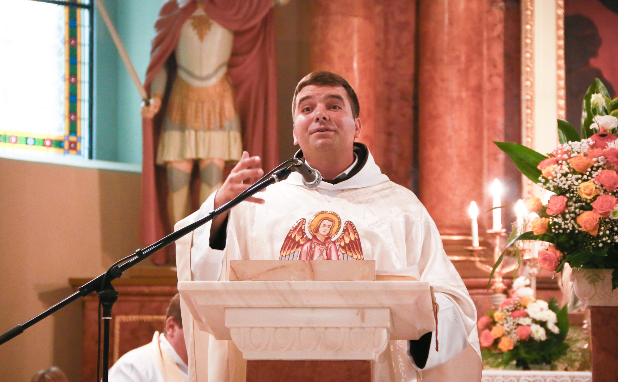 Hugó testvér arra kérte a híveket, gondolkodjanak el, mi akarja életükben átvenni a vezetést: "Mi a fontosabb, a munka, a pénz vagy Isten? Miért ne akarnánk Istennel együtt élni? Miért ne akarnánk Istennek átadni az életünket, hiszen ő az egyetlen és igazi Úr! Ez az Istennek való odaadottság mutatkozzék meg tetteinkben, a mindennapokban. Istennel büszkélkedhetünk a leginkább, ezért a szülők is neveljék bátran a gyermekeket Isten-szeretetre, hisz ez a legnagyobb érték. Egy sziklát, biztos alapot adnak át, ha megtanítják a gyerekeket angyali módon élni. Bátran merjünk leborulni Isten előtt, aki felemel, megdicsőít, és kérjük Szent Mihály arkangyal segítségét a kísértések ellen."