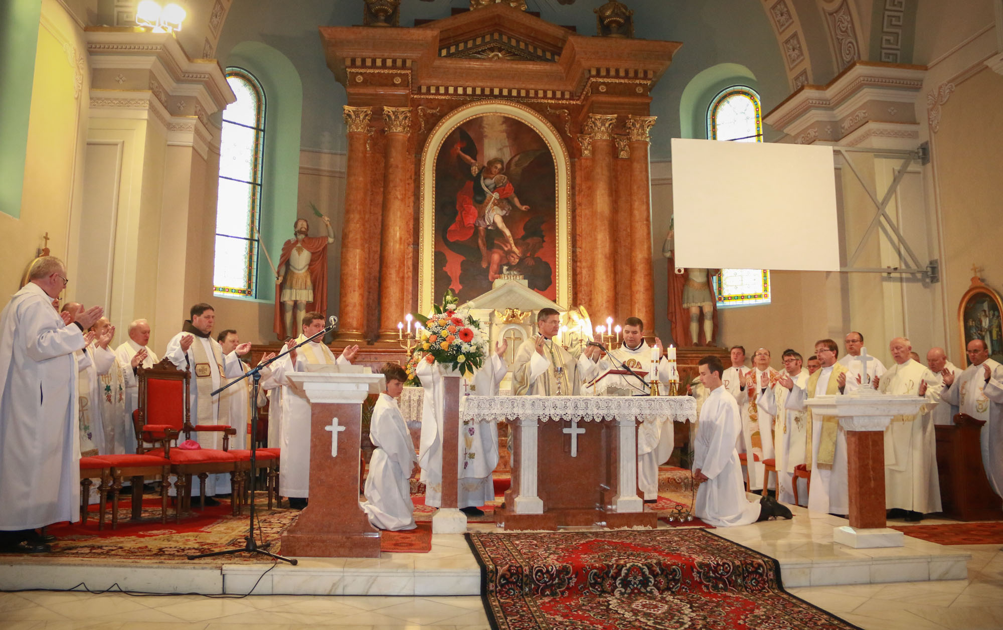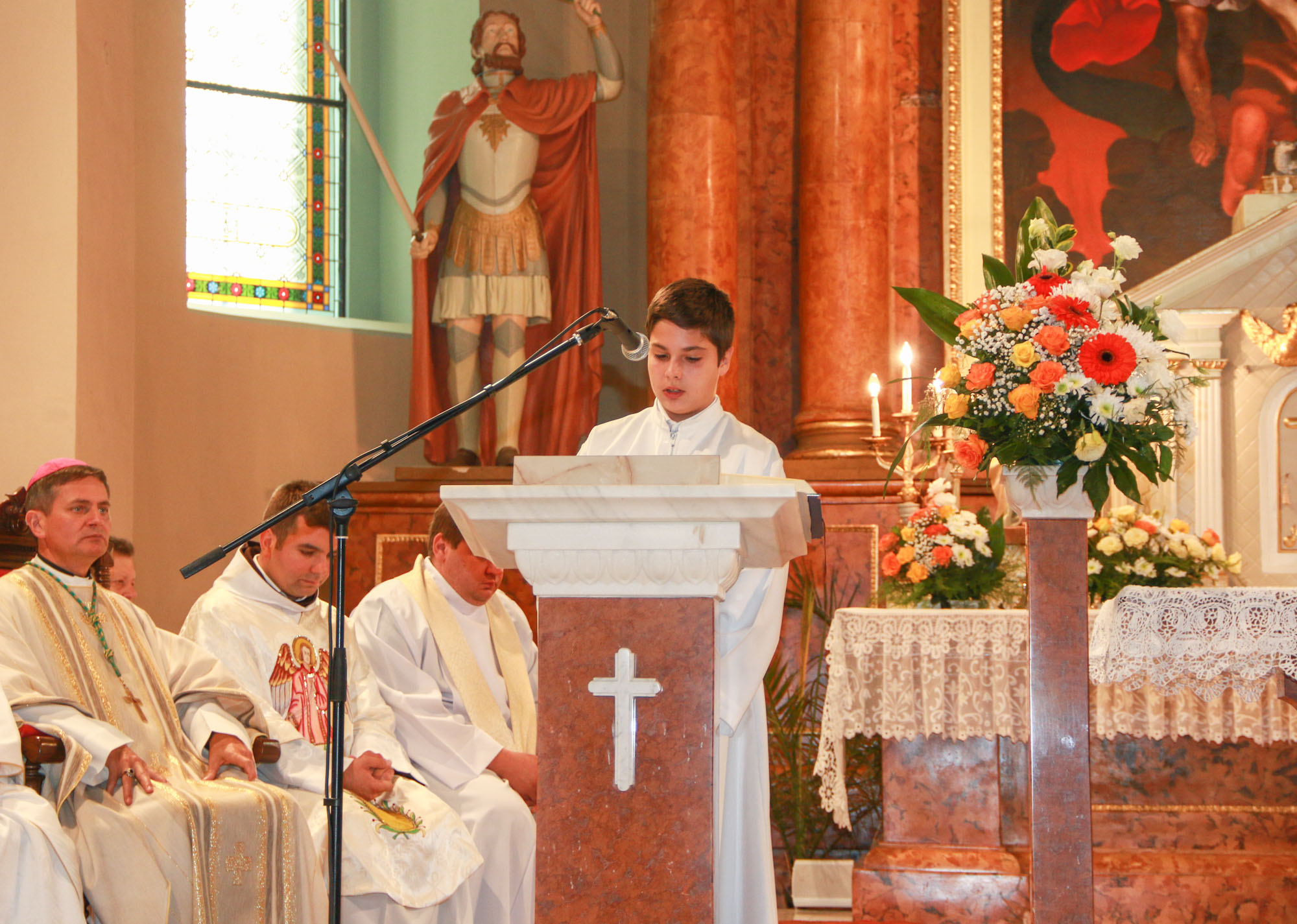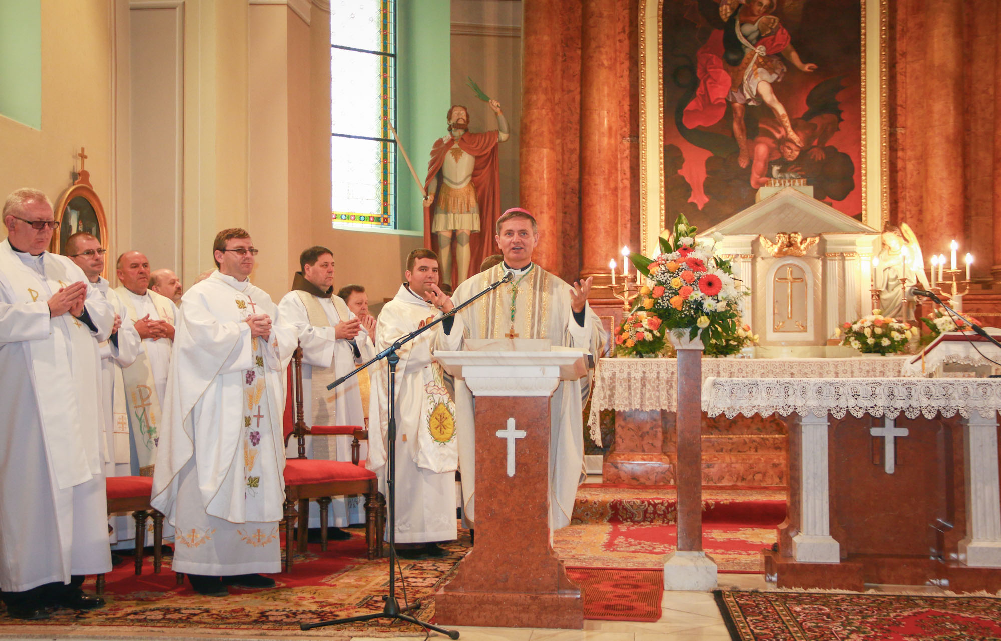 Szent Mihály, Szent Gábriel és Szent Rafael főangyalok ünnepén a mezőfényi katolikus közösség gyűlt egybe temploma búcsújára. A Szent Mihály titulussal rendelkező templom a hétköznapi alkalom ellenére hívekkel telt, mire délelőtt 11 órától Schönberger Jenő püspök paptestvéreivel közösen megkezdte a szentmise bemutatását. "A mai napon dicsőíteni jöttünk a Jóistent, aki angyalokat is teremtett" - szólt a hála szavaival bevezetőjében a főpásztor, hiszen a katolikusok számára kiemelt fontosságúak az embert élete során segítő, vigyázó, óvó angyalok.