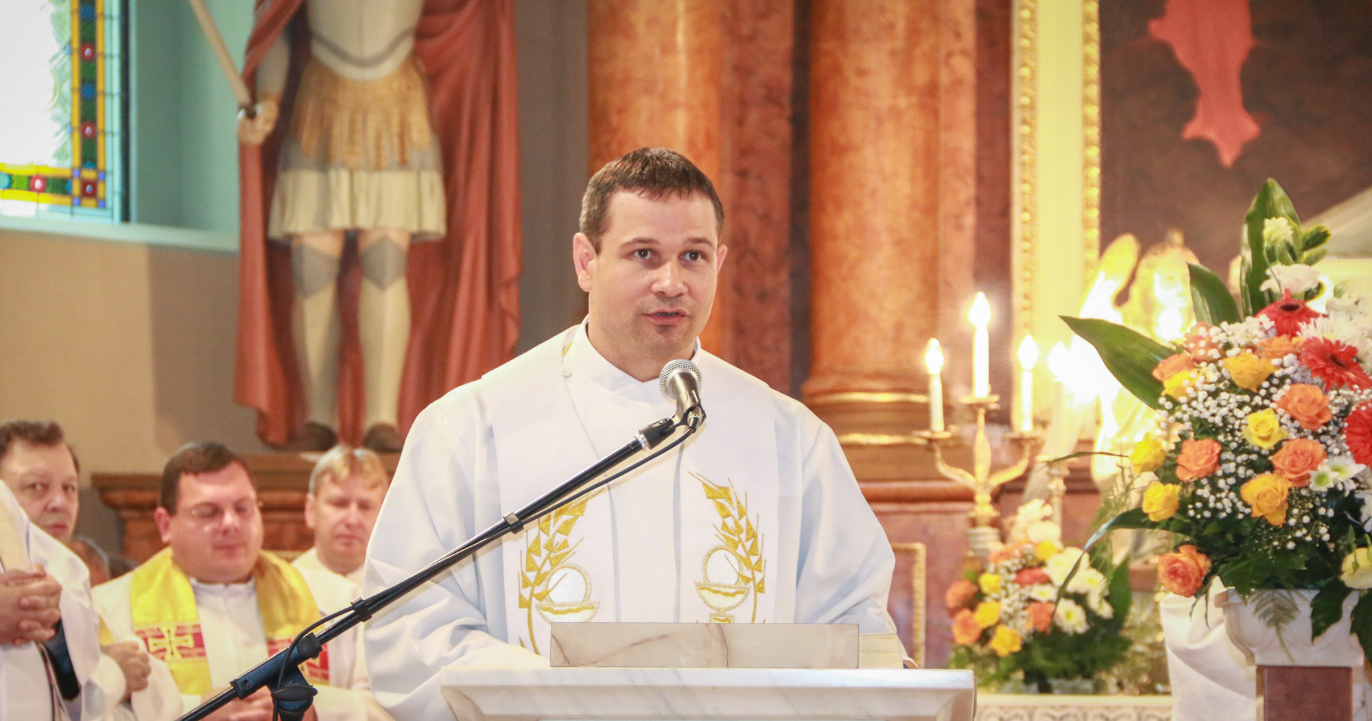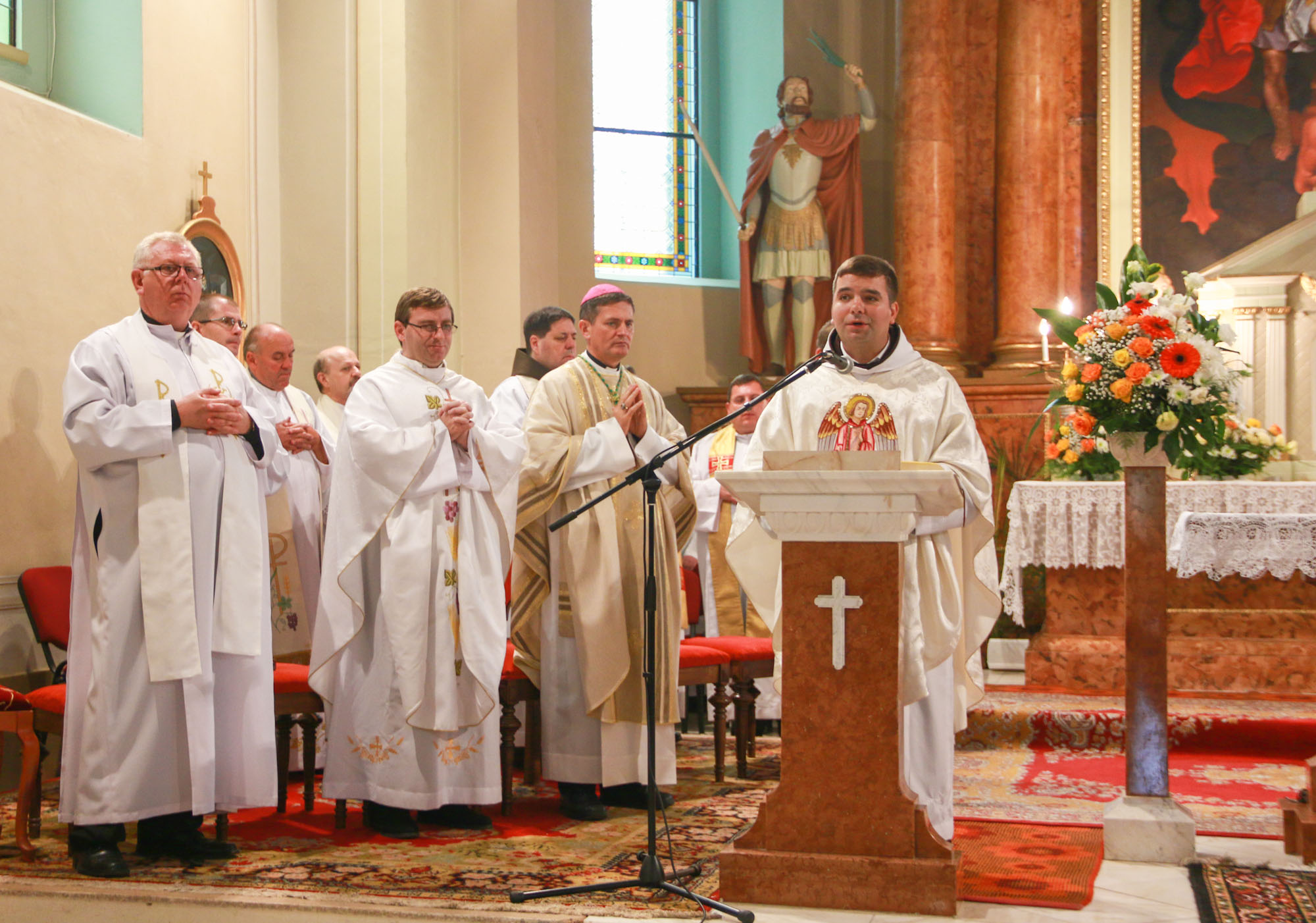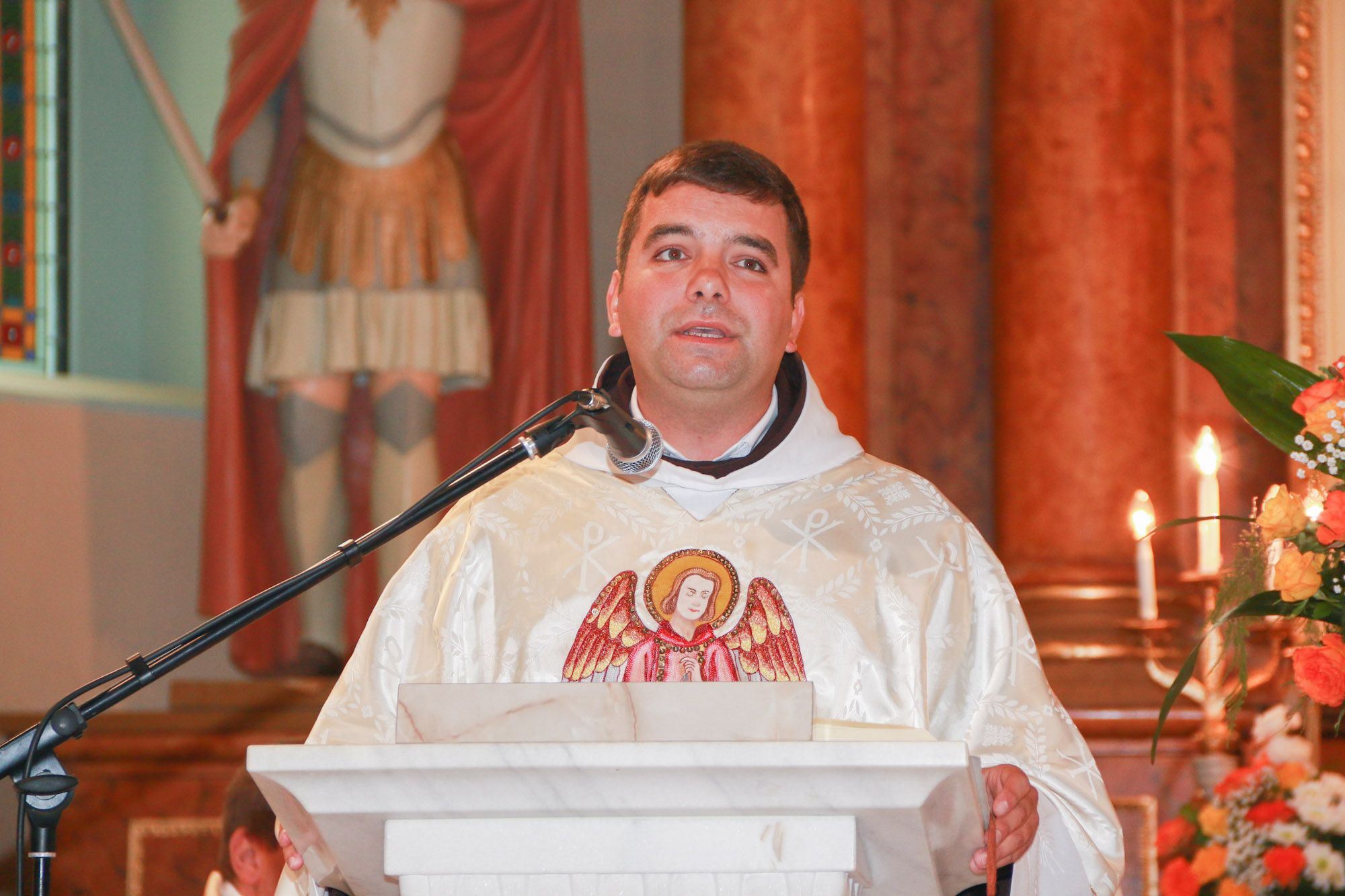 Guia Laurean fr. Hugó ferences szerzetes, szentbeszédében már az angyalok példáján való Isten-követésre, Isten-szolgálatra intette a híveket: "Amikor a faluba érkeztem, azt láttam, hogy tiszta, rendezett település, ahogy szép a templom is. Én azt kívánom, hogy az itt élő embereknek a lelke és a teste is tiszta legyen, soha ne feledjék, hogy mindent Istentől kaptunk és neki is kell, hogy tisztán visszaadjuk. Ki olyan mint az Isten, hogy az ember mást akarna szolgálni? Az angyalok azért vannak velünk és közöttünk, hogy az Isten-szolgálatra példát adjanak, és elvezessenek minket is Istenhez. Egyik sem akar magának megtartani, az a gonosz szándéka. Ahogy kísértés minden, ami a jóra vezető útról el akar minket csábítani. Az angyalok megtanítanak bennünket úgy tekinteni Istenre, mint igazi mesterünkre, akitől tanulnunk kell."