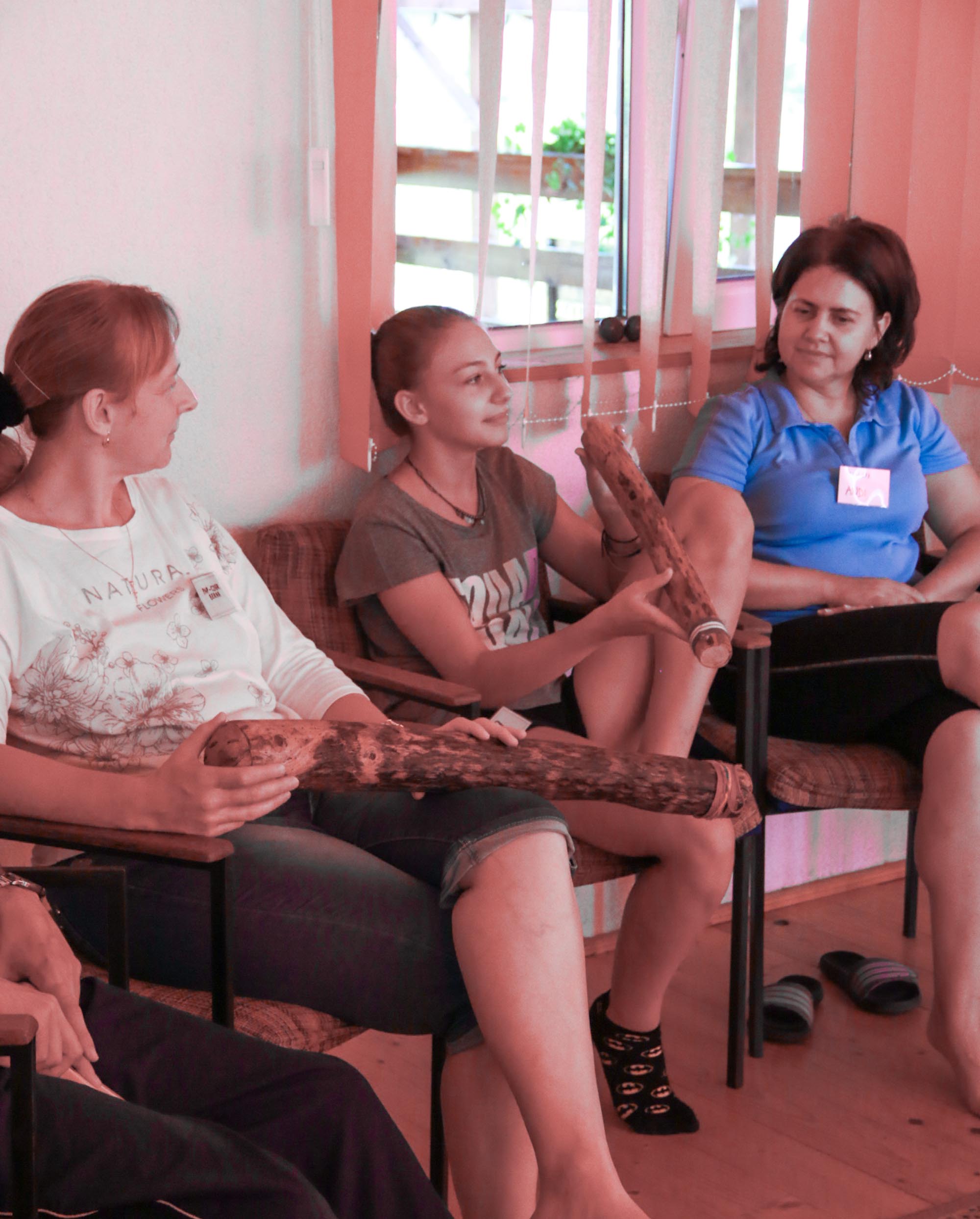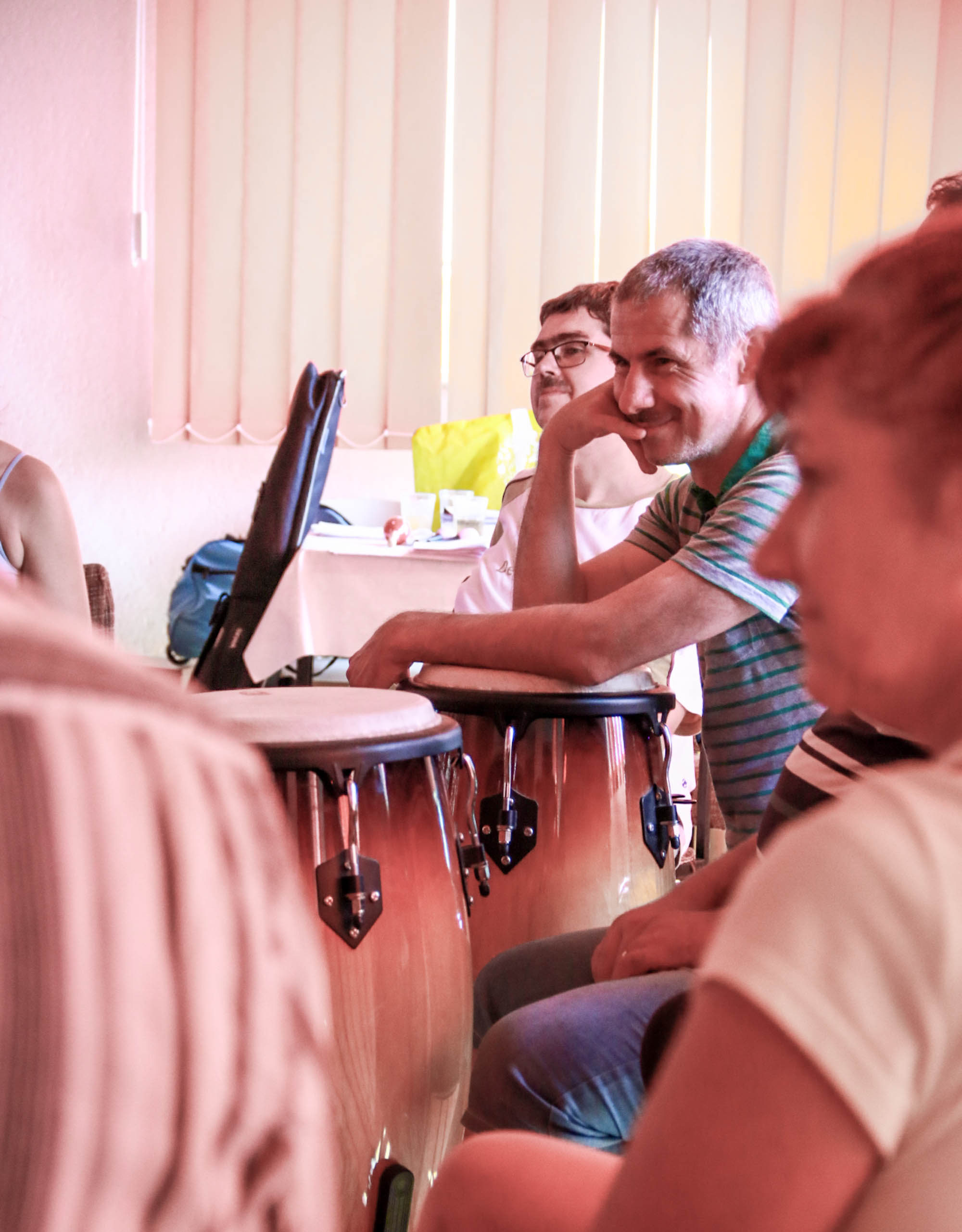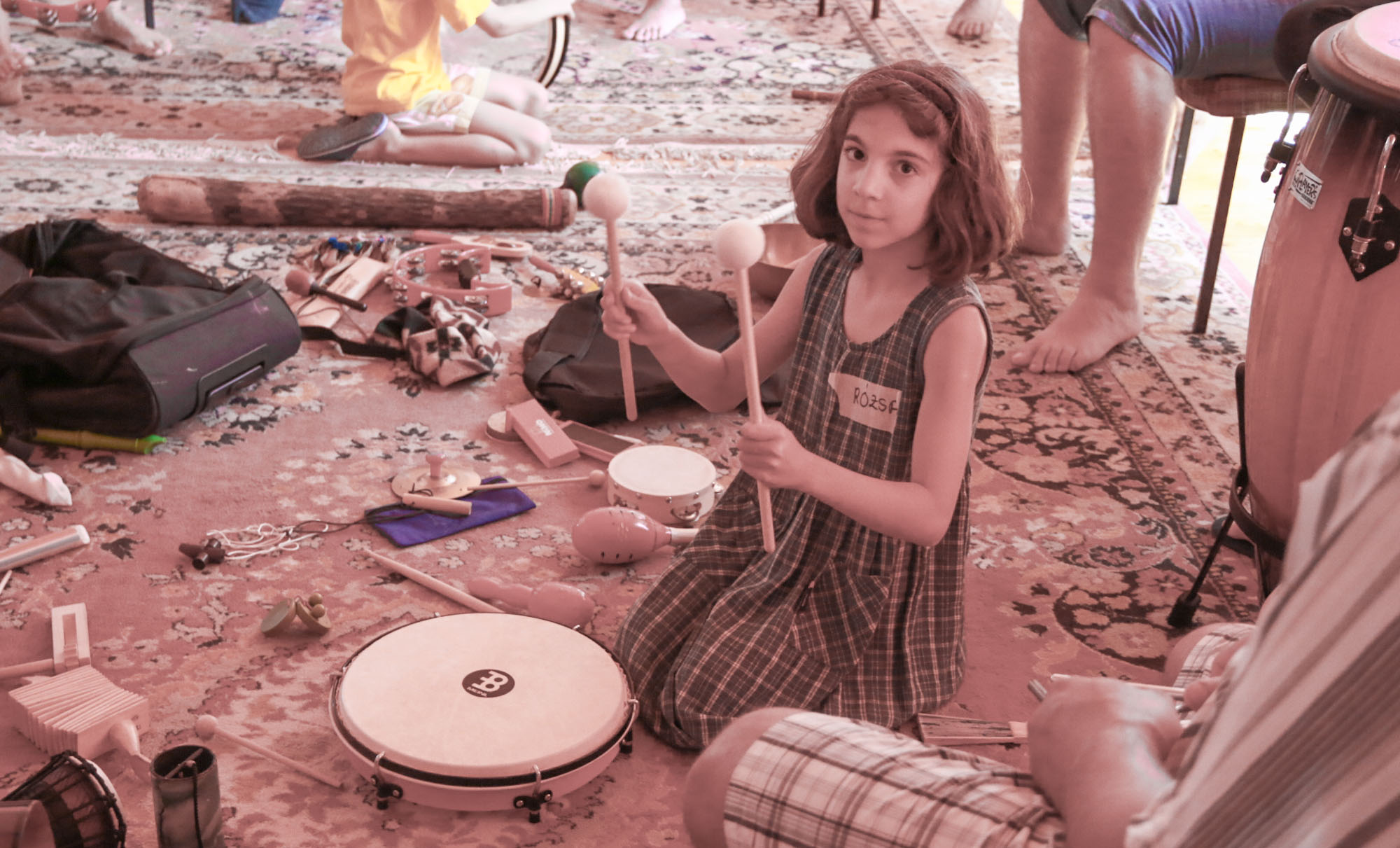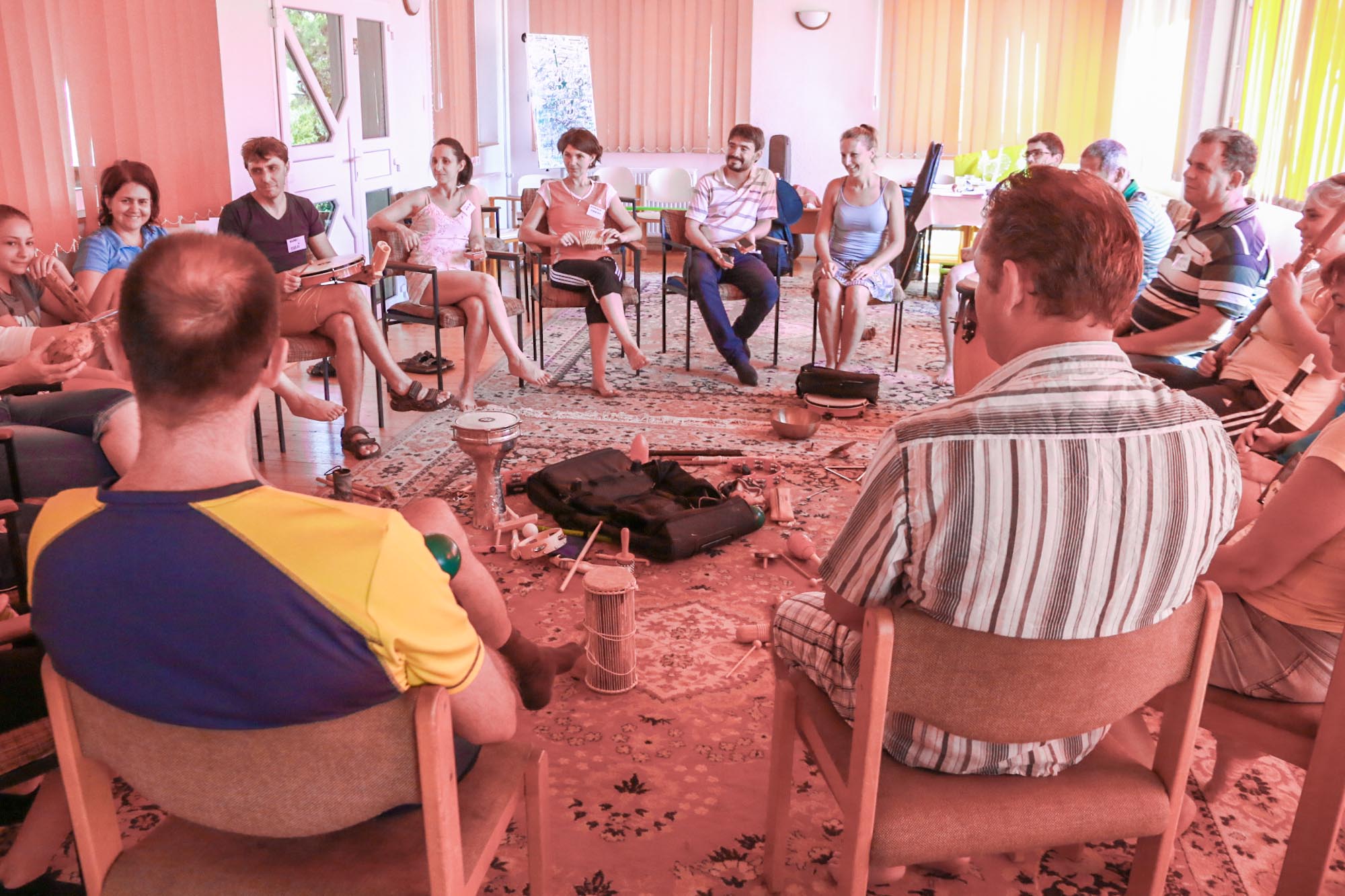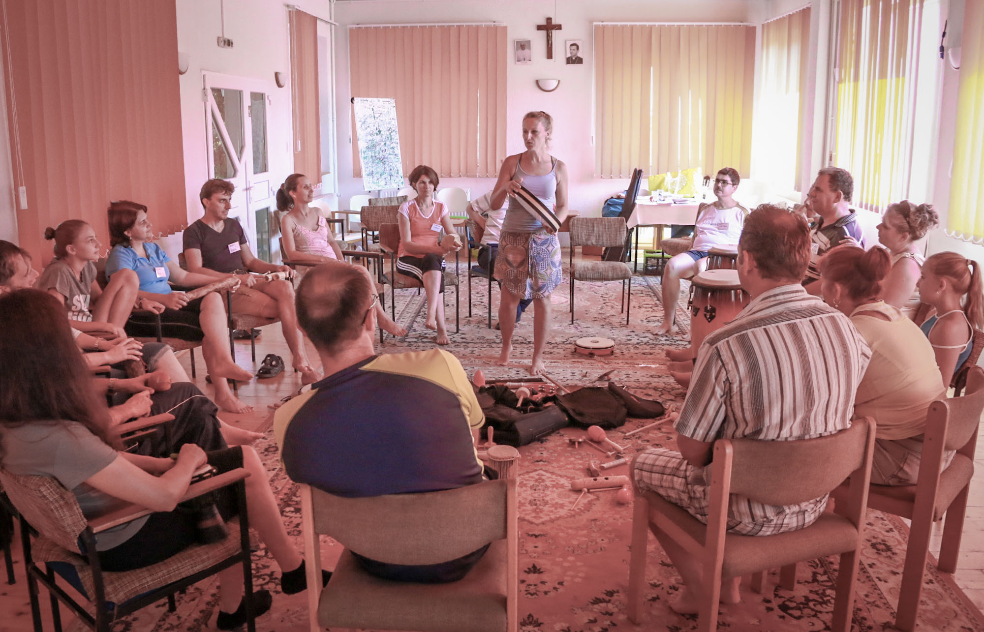 Naponta több foglalkozást tartott szülőknek, de a gyerekeket is igyekeztek bevonni – együtt kerestek hangokat az általa hozott hangszereken, dallamokat-, mesét alkottak. „Egy szerető és nyitott közeg képe volt előttem, mielőtt ide jöttem, és egy nagyon egymásra figyelő, empatikus társaságot látok most” – mondta a tábor derekán a zeneterapeuta. „Azt a célt tűztük ki, hogy jobban megismerjük önmagunkat nonverbális módon. Látjuk, hogy a zene a szavakon túl is működik, és ezt a minőségét szeretné a közösség megtapasztalni.”