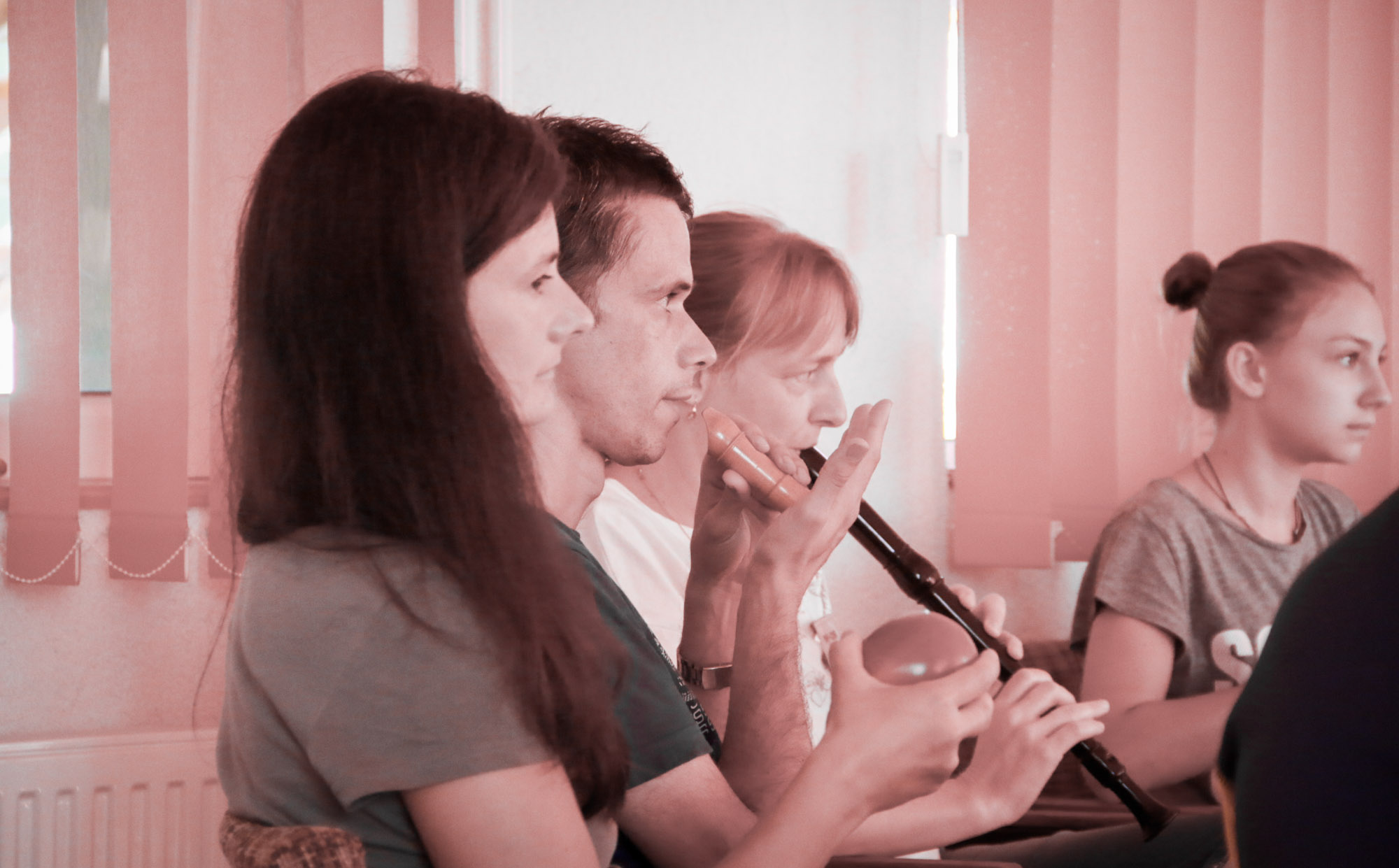 A zene önmaguk, a párkapcsolat, a család és közösség vonatkozásában – ezeket a pontokat érintve, sokat improvizálva zajlott a tábor. Ezeken kívül a résztvevők páros játékokban vettek részt hangszerekkel és saját hanggal, valamint mindannyian, közösen egy dalt alkottak a tábor során.