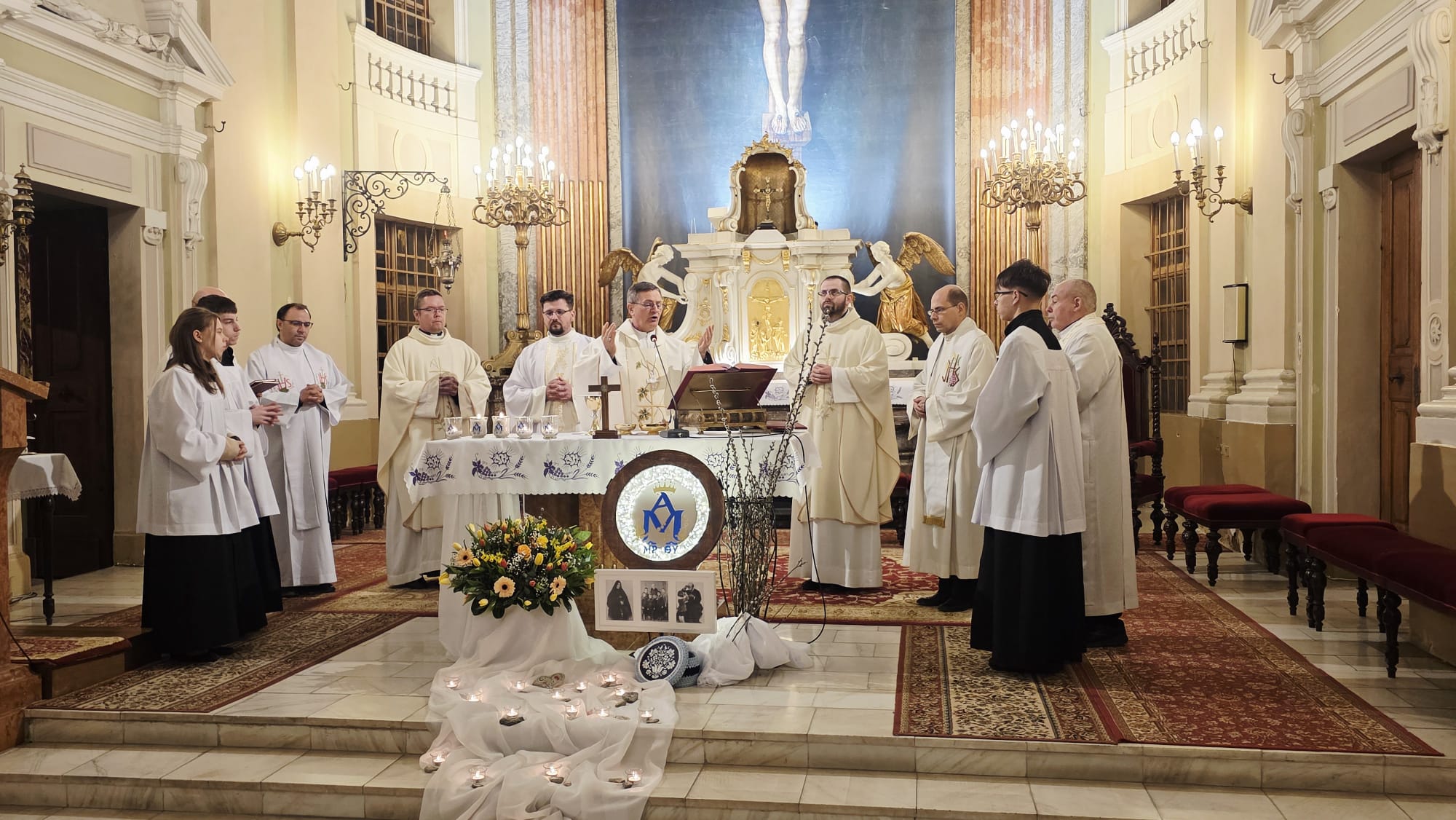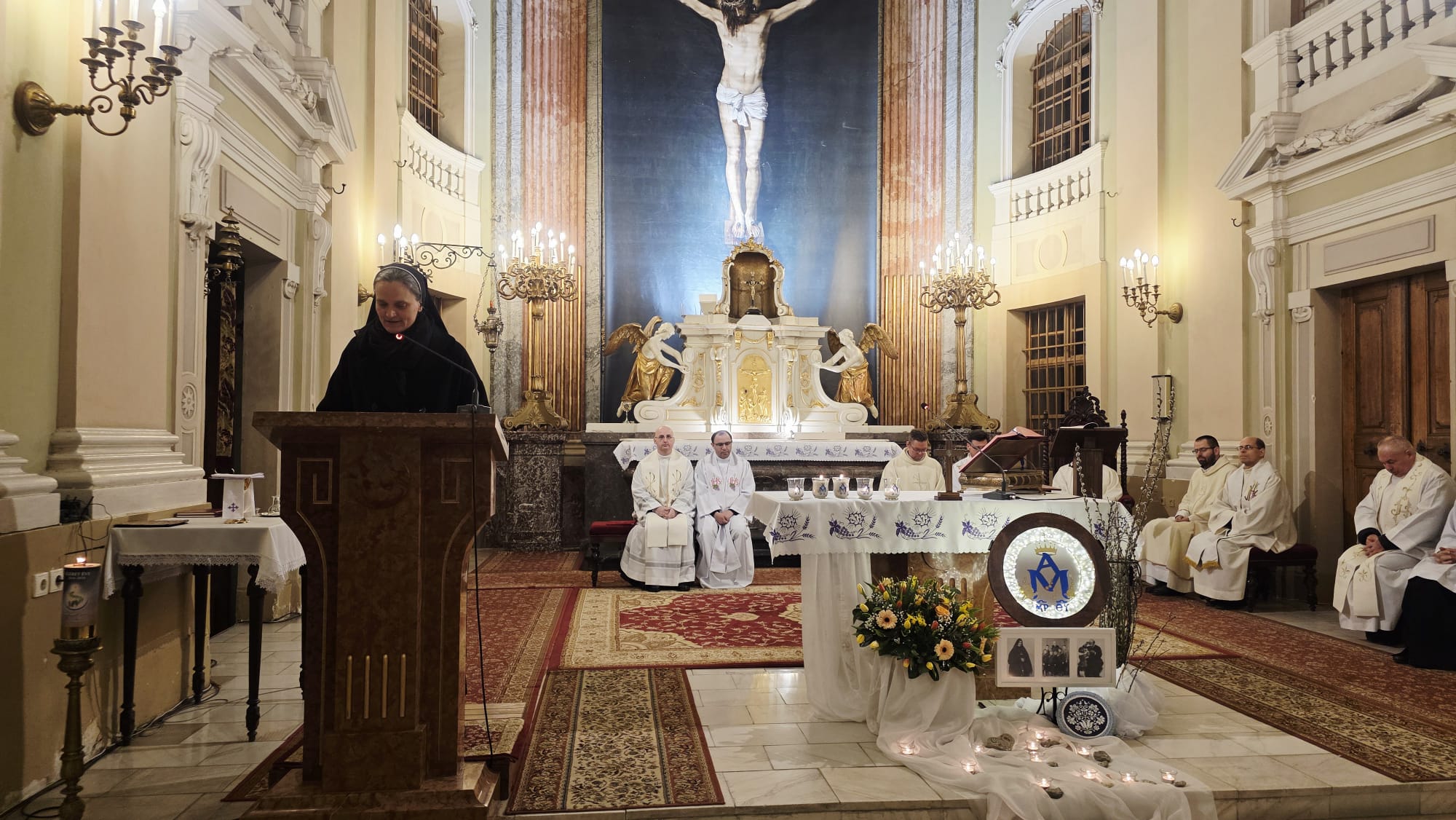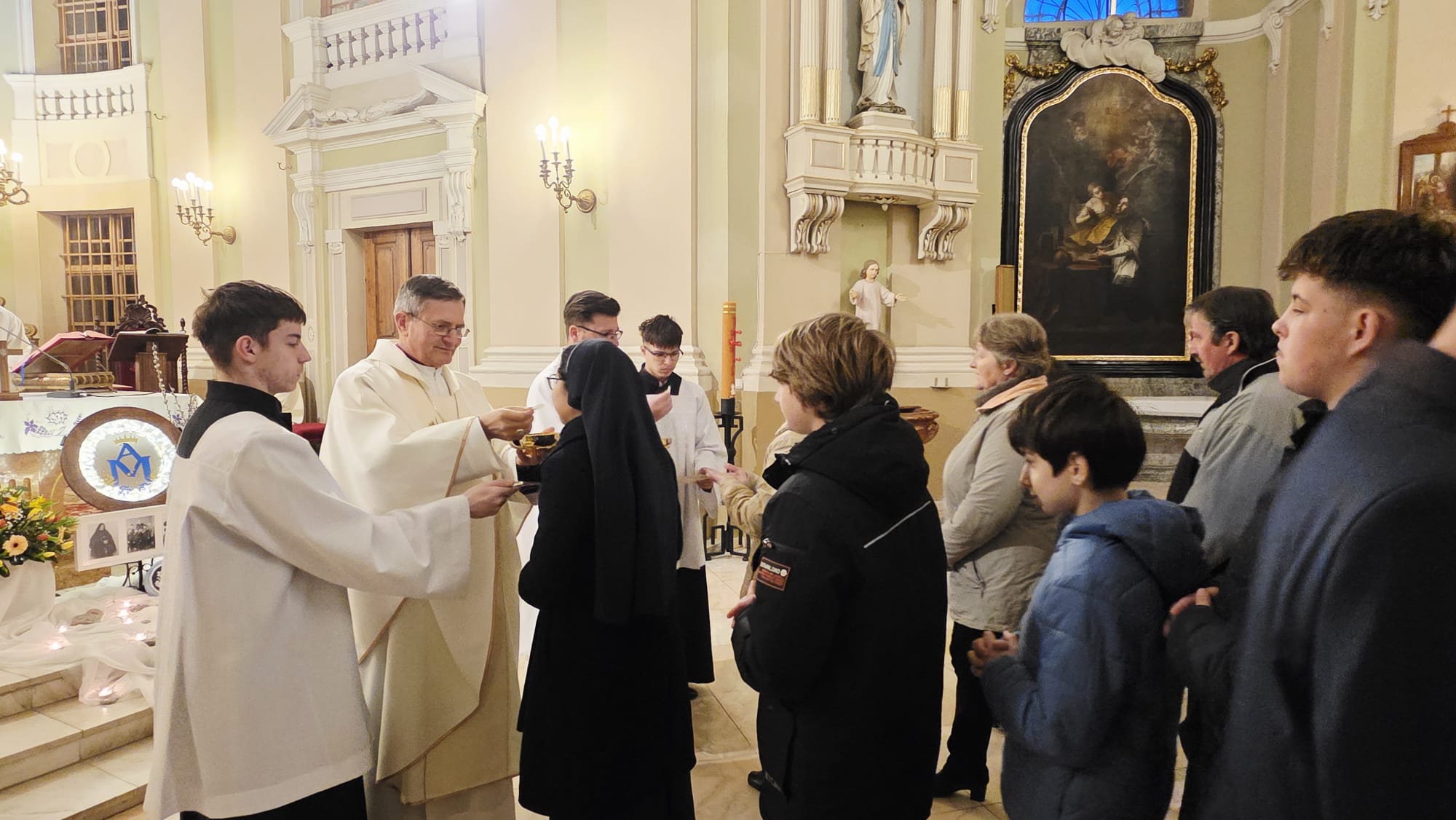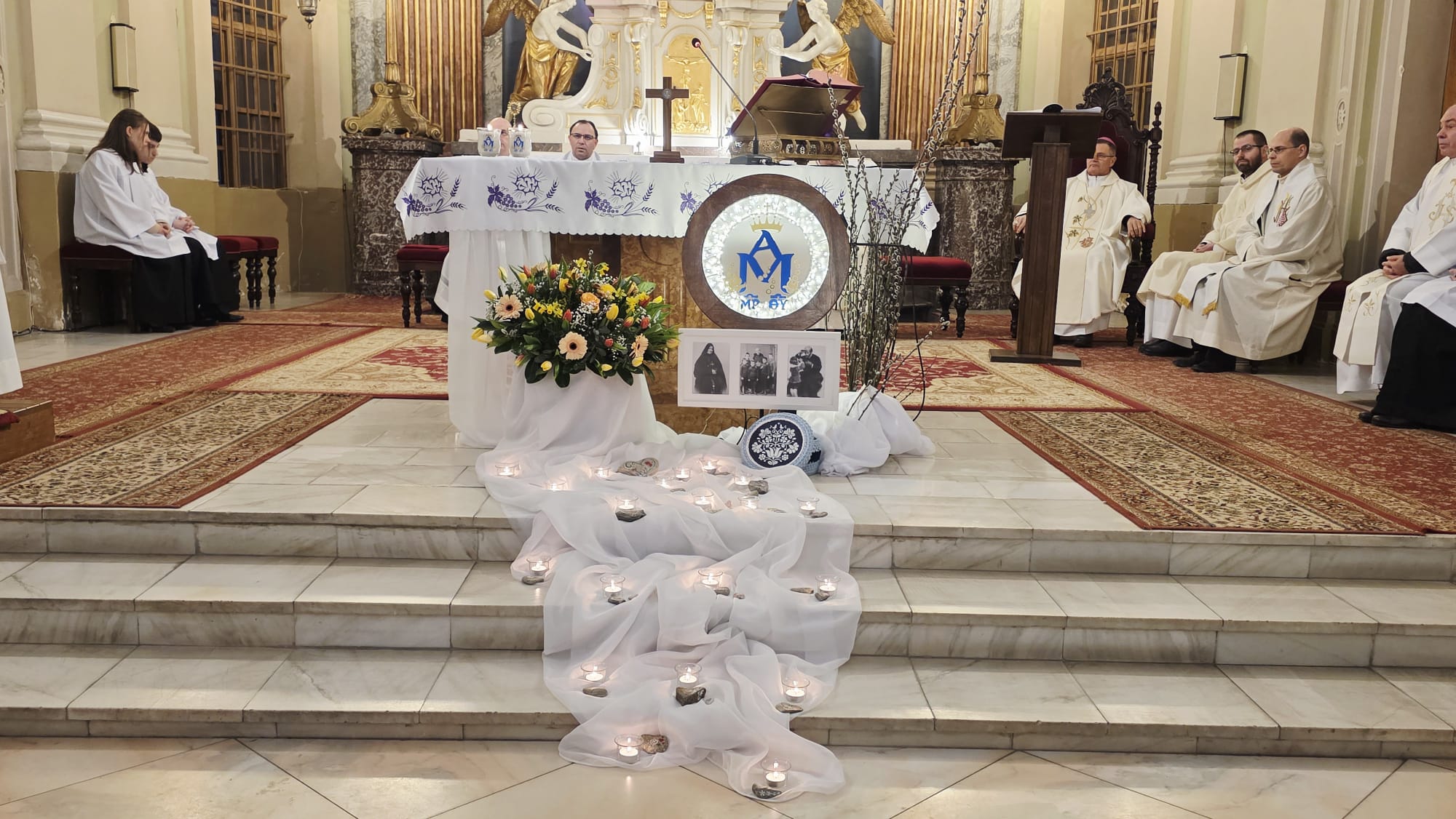 Az evangélium felolvasását követően a közösség megható pillanatnak lehetett tanúja: a három piarista nővér – Ágnes, Bori és Dania nővérek – ünnepélyes keretek között megújították szerzetesi fogadalmukat, megerősítve Krisztushoz és hivatásukhoz való hűségüket.