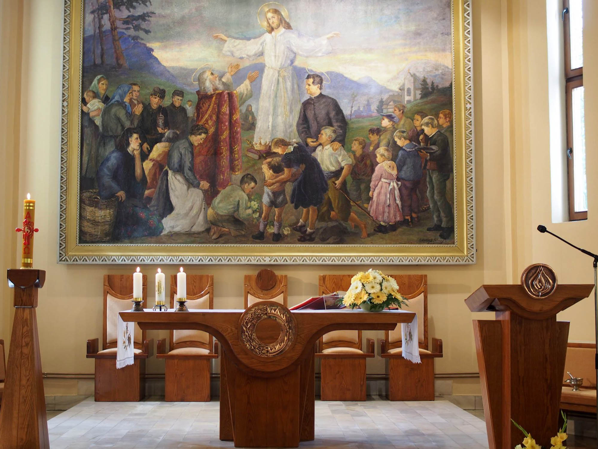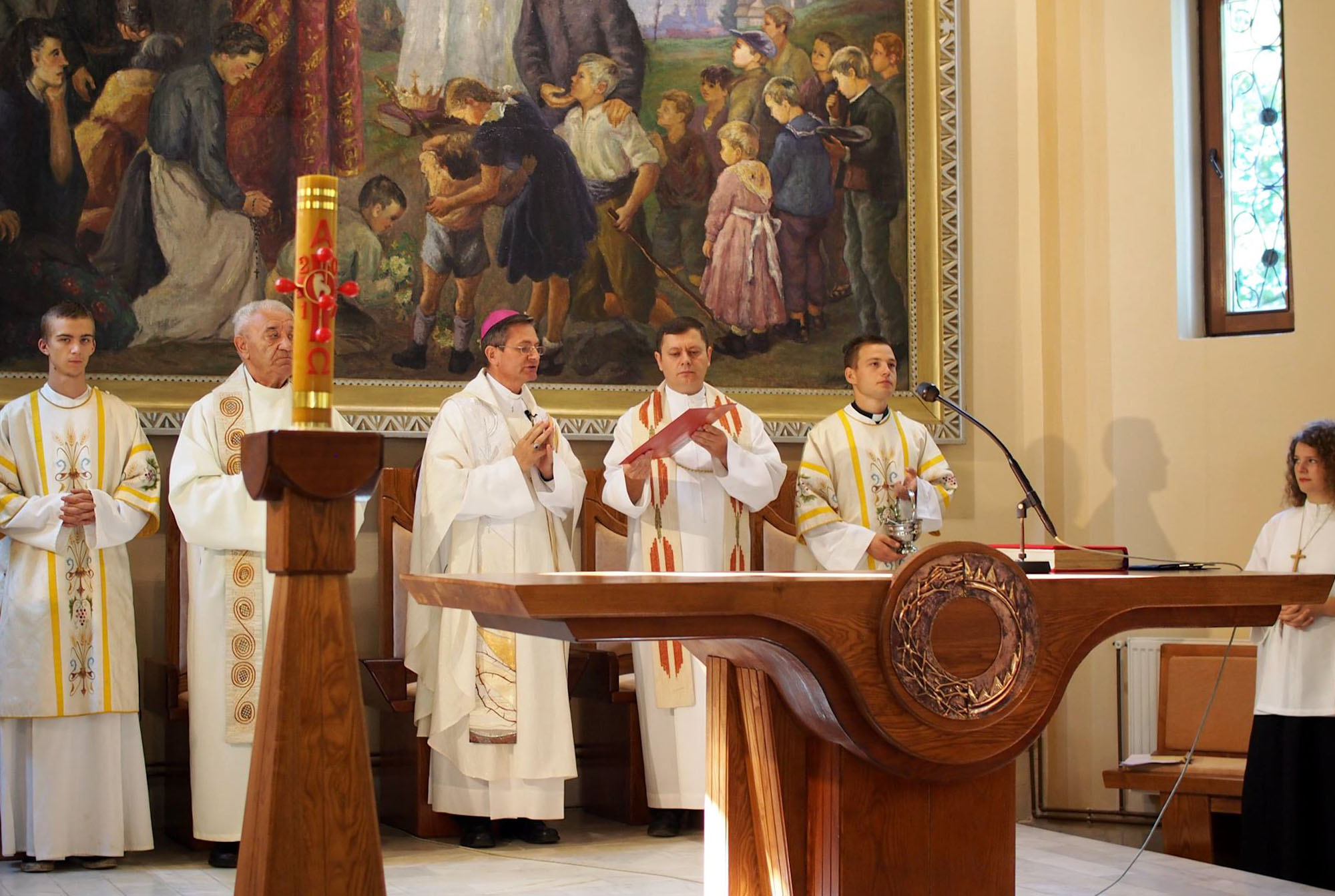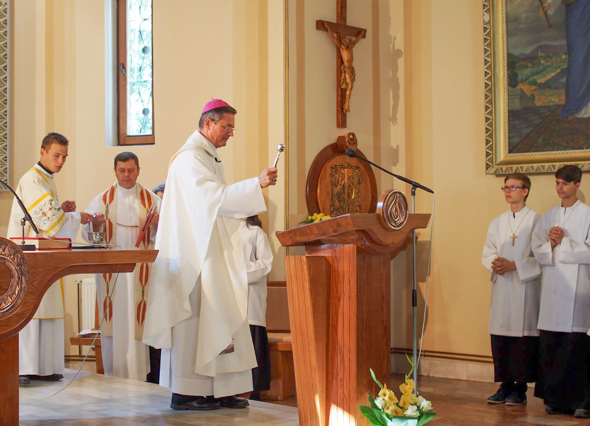 Schönberger Jenő püspök áldotta meg augusztus 27-én, vasárnap a nagybányai Krisztus Király templom új szentélyberendezését.