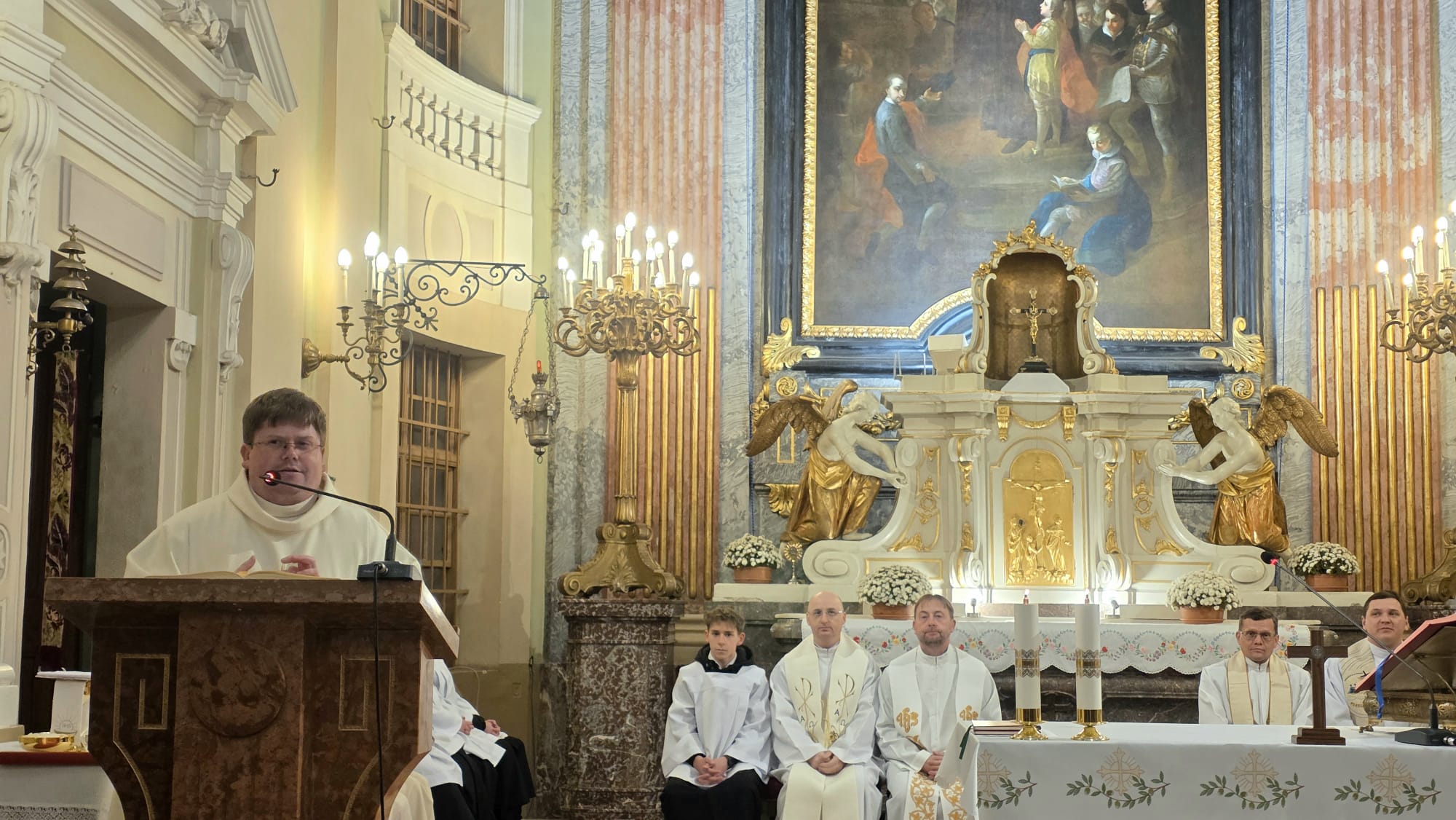 A szentmise szónoka Tóth Attila Levente tasnádi plébános volt. Beszédében egy idős ember történetét idézte fel, aki élete során minden vagyonát a szegényeknek adta, és ezt egy gyermekkori élményével magyarázta: gyermekként társaival a sötét pincéből egy törött tükördarab segítségével találtak ki a fényre, a biztonságra. Ez az élmény életre szóló mottóvá vált számára: „Fényt vinni oda, ahol nincsen.” Ez jellemezte Kalazanci Szent József életét is, hiszen ő is a rászorulók, diákok és szegények közé vitte el Krisztus világosságát. Ezért a plébános atya arra buzdította a jelenlévőket, hogy ők is legyenek „törött tükördarabok”, akik életükben, türelmükkel, jóságukkal és szeretetükkel tükrözik vissza Isten fényét a világban. Hangsúlyozta, hogy mindannyian Isten képmásai vagyunk, értékesek és szerethetők, s hogy a hiteles keresztény élet az apró, szeretettel teli tettekben mutatkozik meg. A tanárokhoz és tanítókhoz külön is szólt, emlékeztetve őket, hogy hivatásuk nem csupán munka, hanem isteni szolgálat, amelyhez szeretettel és elhivatottsággal kaptak meghívást. Arra hívta őket, hogy térjenek vissza ahhoz az „első szeretethez”, amiért egykor tanárok akartak lenni, és ne hagyják, hogy a mindennapi kihívások elvegyék lelkesedésüket.