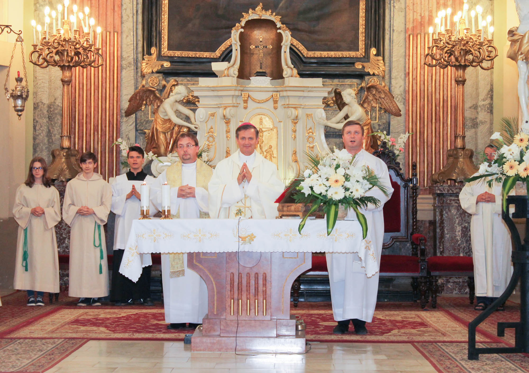 A ministránsok számára kétség kívül az egyik legfontosabb programpont a püspöki szentmise volt. Schönberger Jenő püspök meglátogatta őket rendezvényükön, bátorította, buzdította őket, négy órától pedig szentmisét mutatott be körükben. Ennek szentbeszédét a házigazda közösség plébánosa, Ilyés Csaba nagykárolyi főesperes mondta, kérve a fiatalokat, hogy ahogyan a tanítványok követték Jézust és vele maradtak, úgy ők se térjenek le megkezdett útjukról. Emlékeztetett a hivatások szombatjára, amely a ministránstalálkozó napjára esett és kérte a ministránsokat, imádkozzanak a hivatásokért, legyenek ők, maguk is nyitottak, figyelmesek Isten hívására - akár a ministránsi út folytatására, akár mélyebb követésre szól a meghívás.