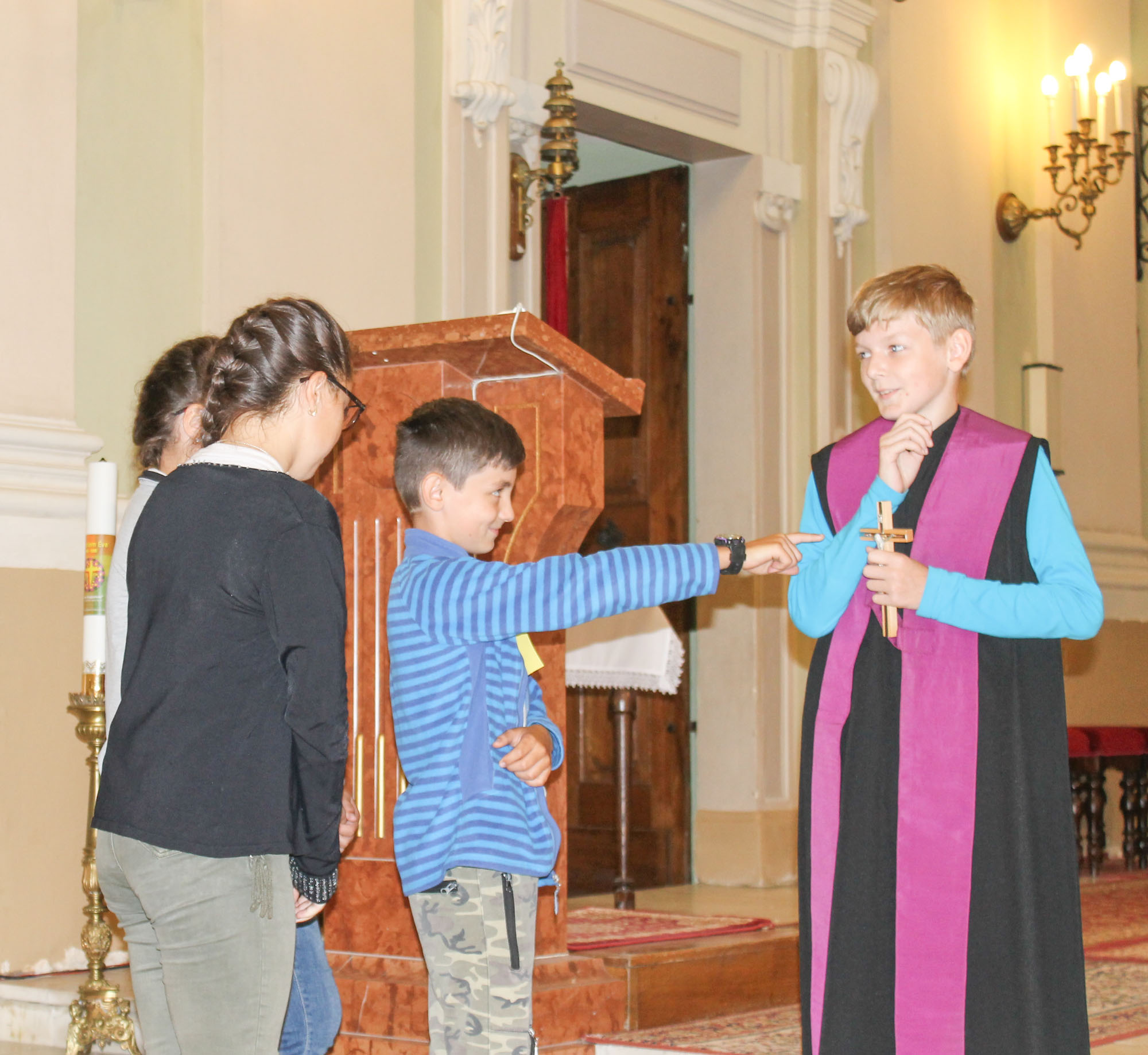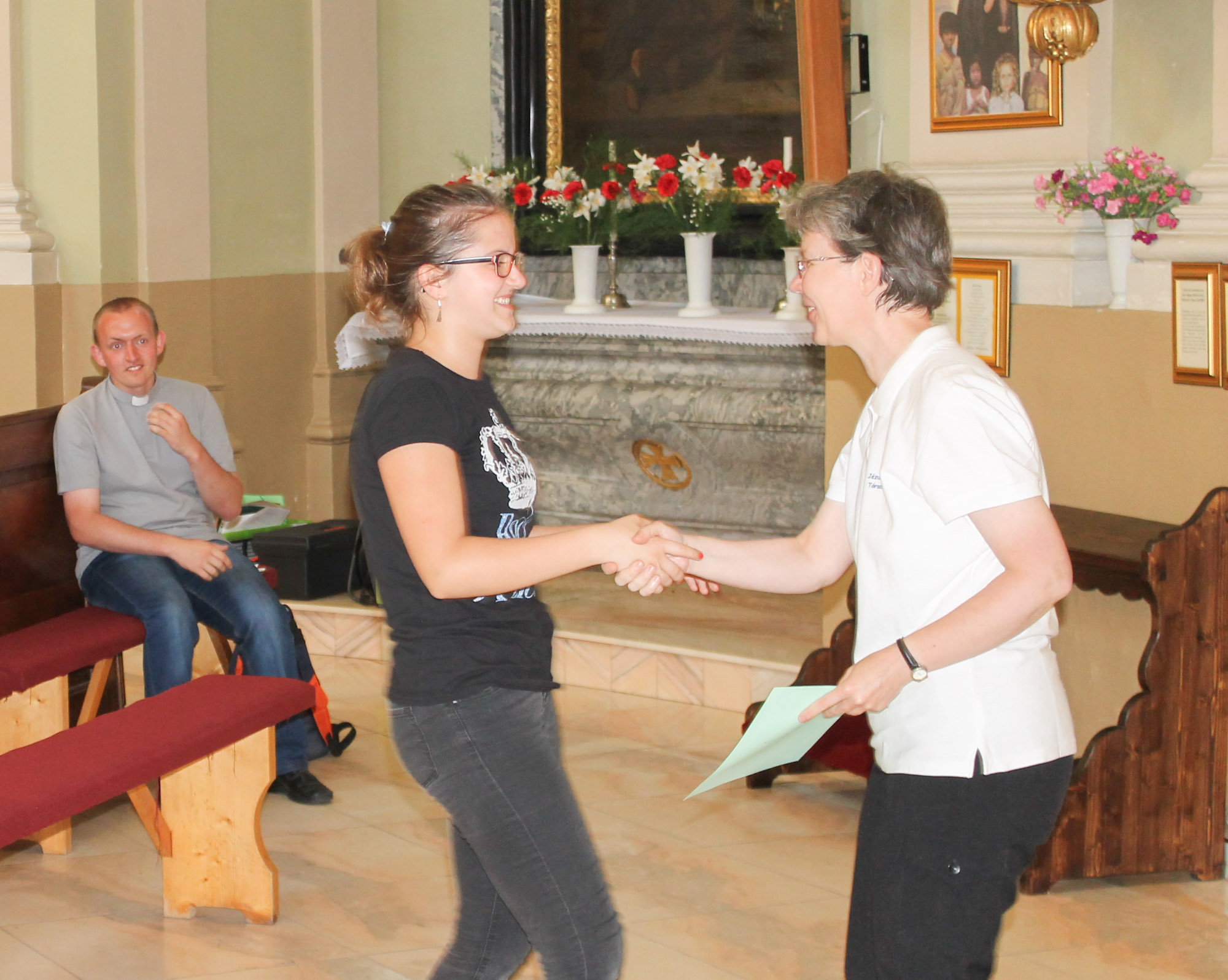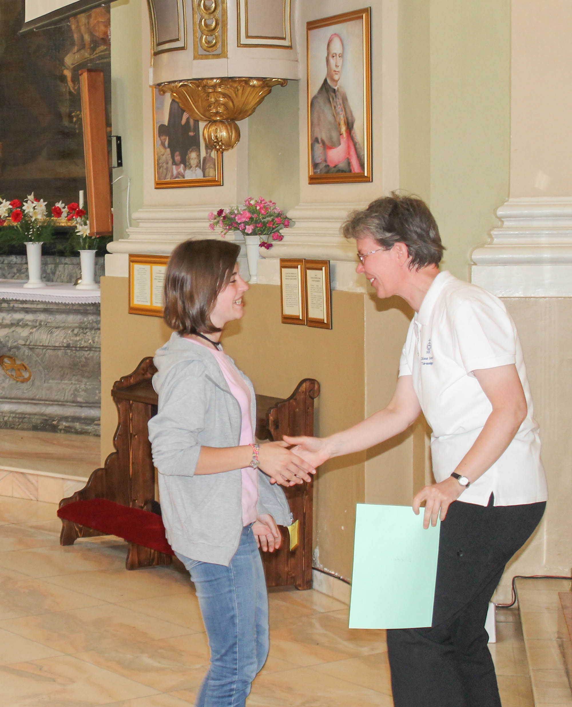 A felsőbányai ministránsok képviselője átveszi az oklevelet