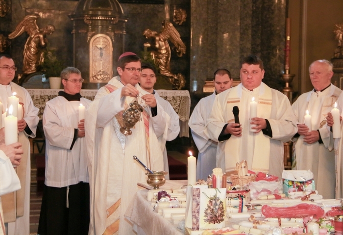 Negyven nap telt el Urunk születésének ünnepe, vagyis karácsony óta. A katolikus egyház minden év, február 2-án arra a momentumra emlékezik, hogy Szűz Mária és Szent József bemutatta Jézust a templomban. Simeon, akkor a gyermek Jézust a nemzetek megvilágosítására szolgáló világosságnak nevezte - innen ered a hagyomány, hogy a templomokban ezen a napon gyertyát szentelnek. A Székesegyházban tizenegy órától kezdődött az ünnepi szentmise, melynek elején Schönberger Jenő püspök, a jelenlevő papokkal és ministránsokkal a jobb mellékoltárnál felállított asztalhoz vonult és megáldotta a hívek által oda elhelyezett gyertyákat. Égő gyertyával a kezében és szenteltvizet hintve indult aztán az oltárhoz, hogy mindannyian találkozzanak Krisztussal, a világ világosságával a szentmiseáldozatban.
