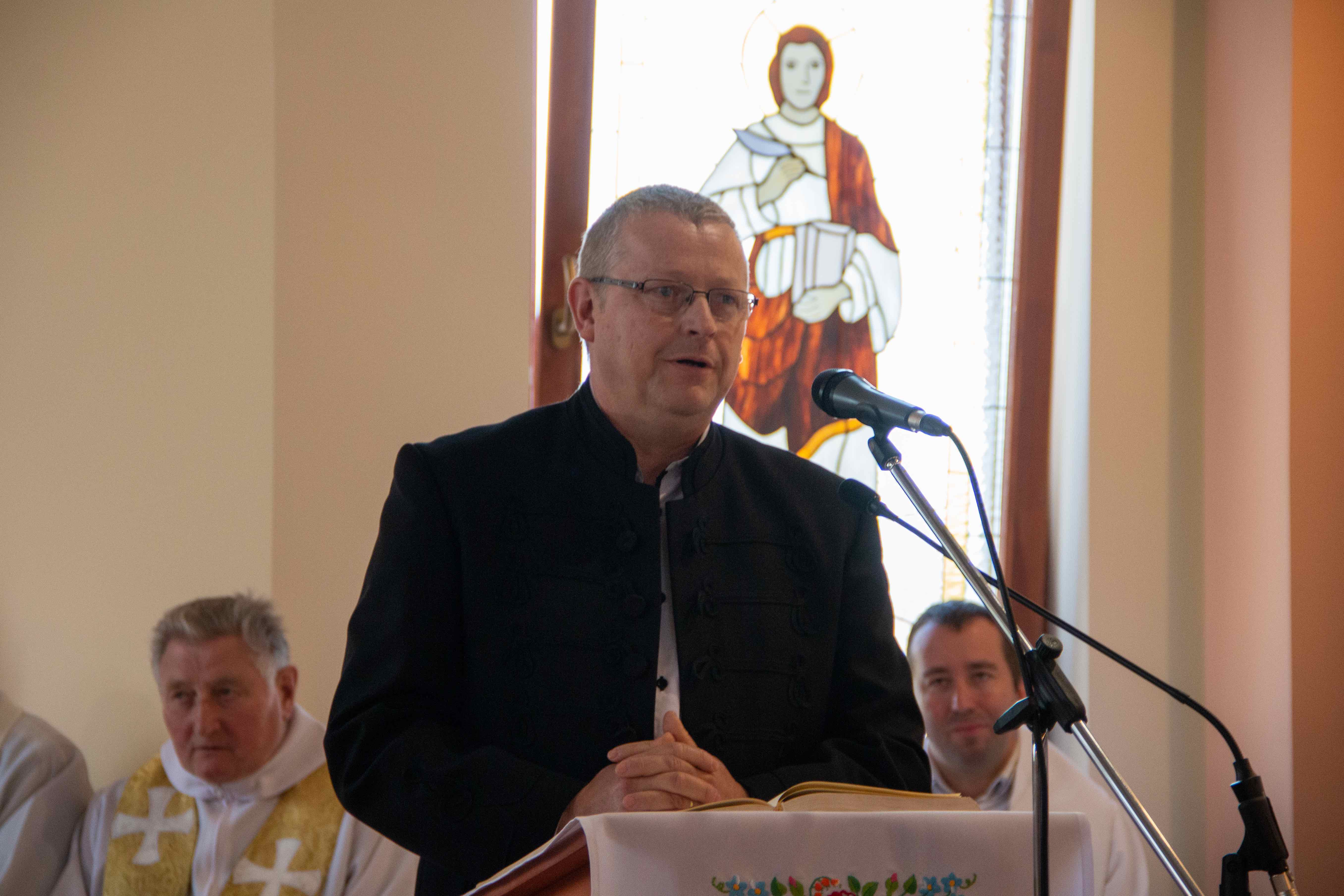 Az ünnepi szentbeszédben a püspök atya felhívta a hívek figyelmét, hogy keveseknek adatik meg az a kegyelem, hogy szülőfalujukban templomszentelésen vehetnek részt, és láthatják, hogyan nő ki a földből az az épület, amely Isten házává lesz az emberek házai között.