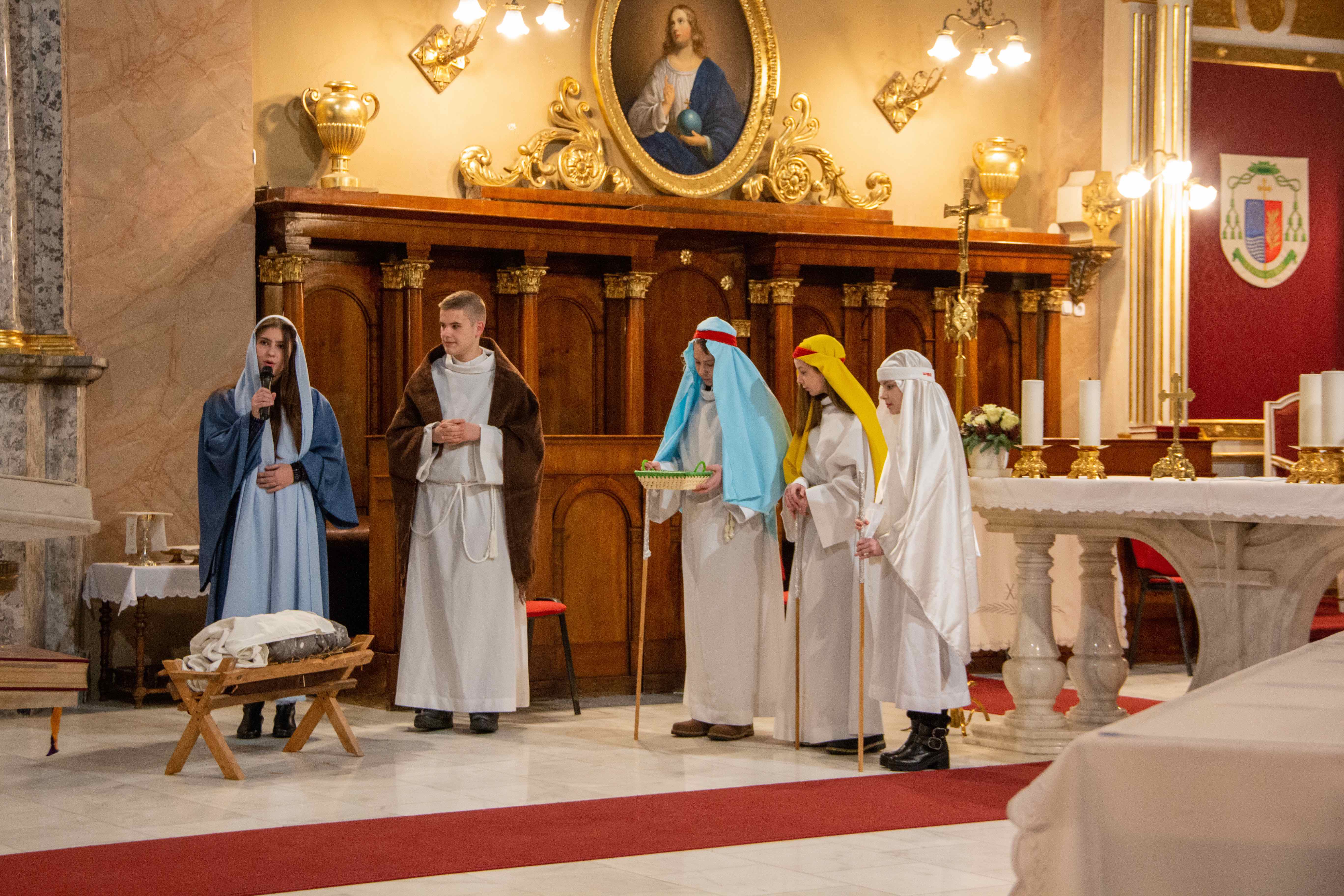 A Szatmárnémeti Székesegyházban este fél 8-tól kezdődött a fiatalok műsora, melyben a bérmálkozásra készülők versekkel és pásztorjátékkal örvendeztették meg a híveket. A műsort összeállító Ft. Daly Attila, a Székesegyház segédlelkésze, elmondta, hogy a Karácsony Isten szeretetének a megnyilatkozása, hiszen Krisztus önmagával ajándékozta meg valamennyiünket azáltal, hogy emberré lett.