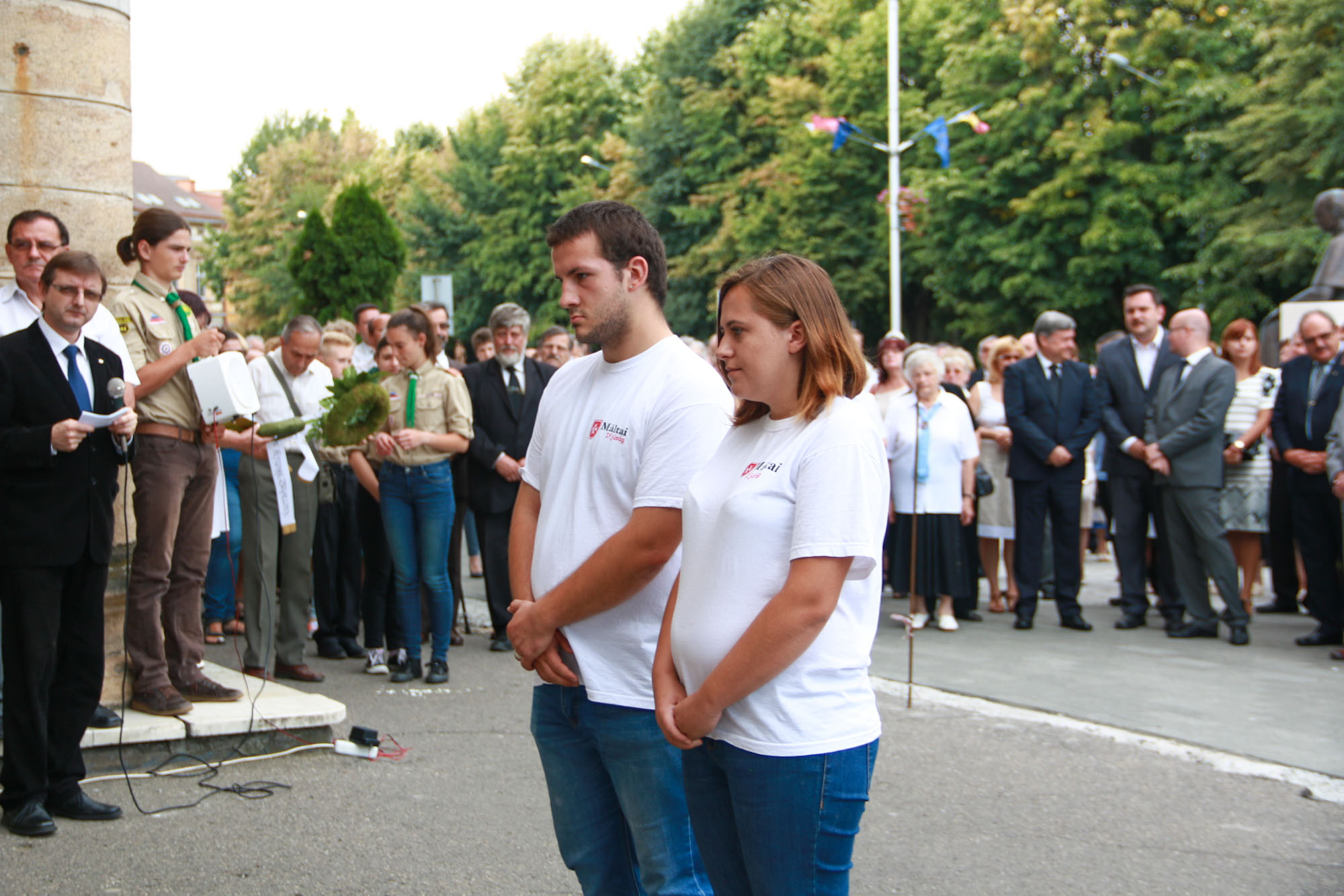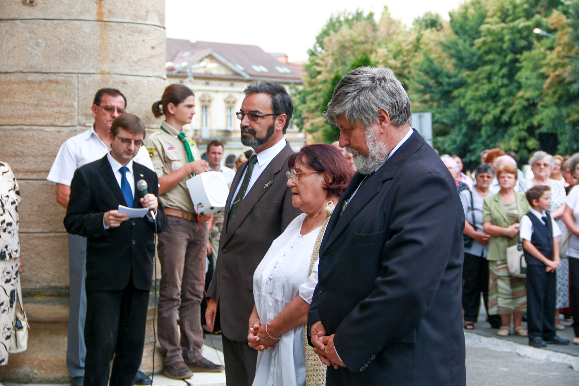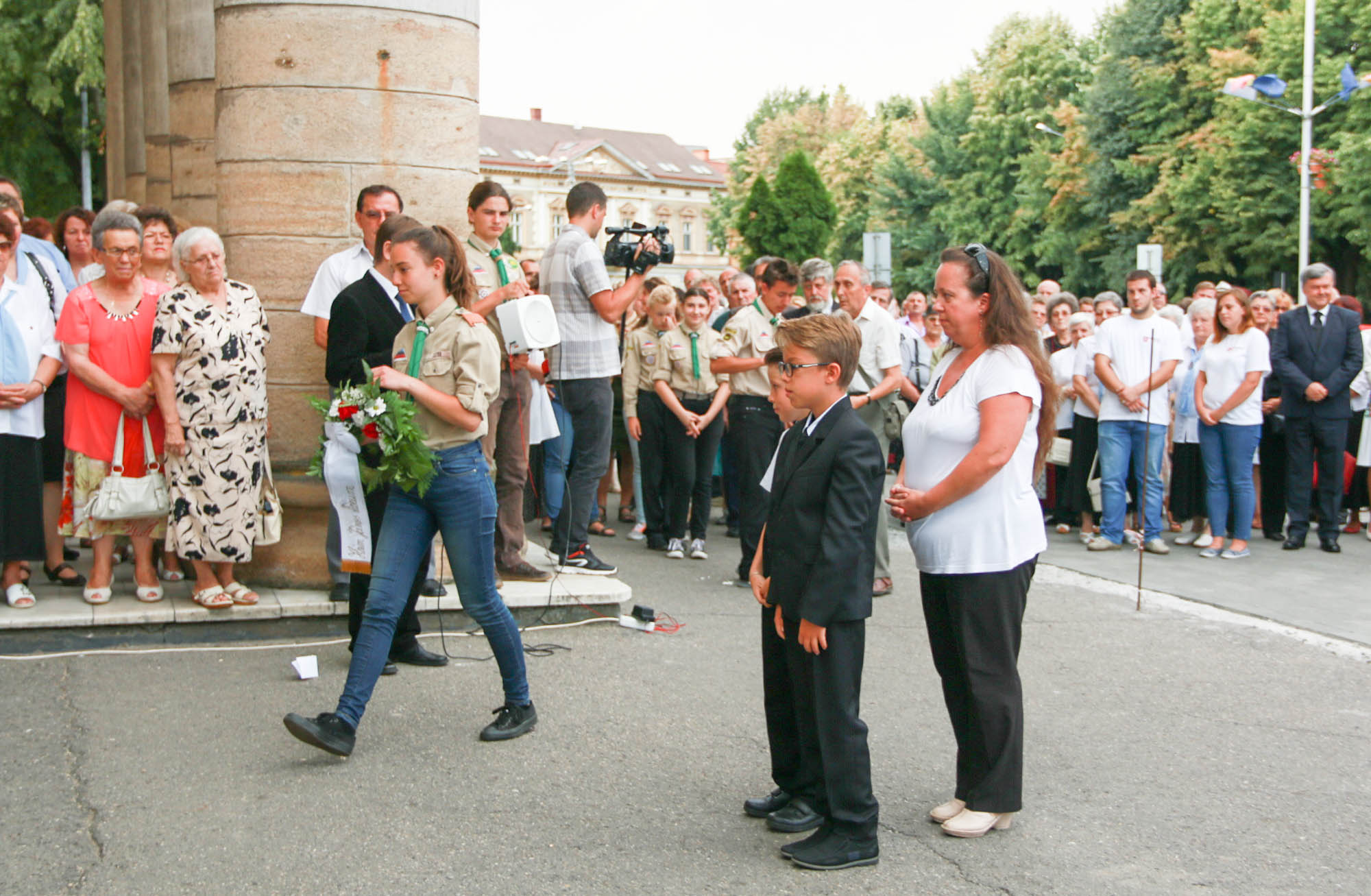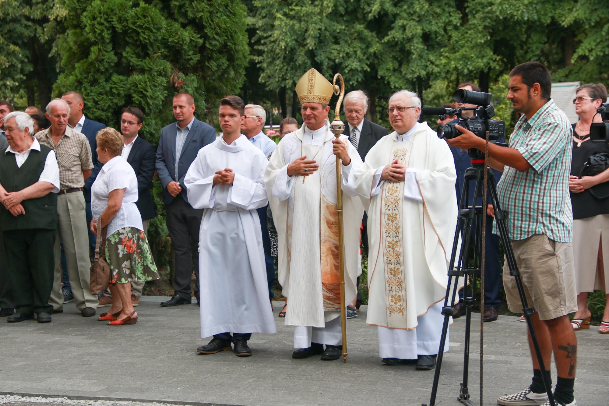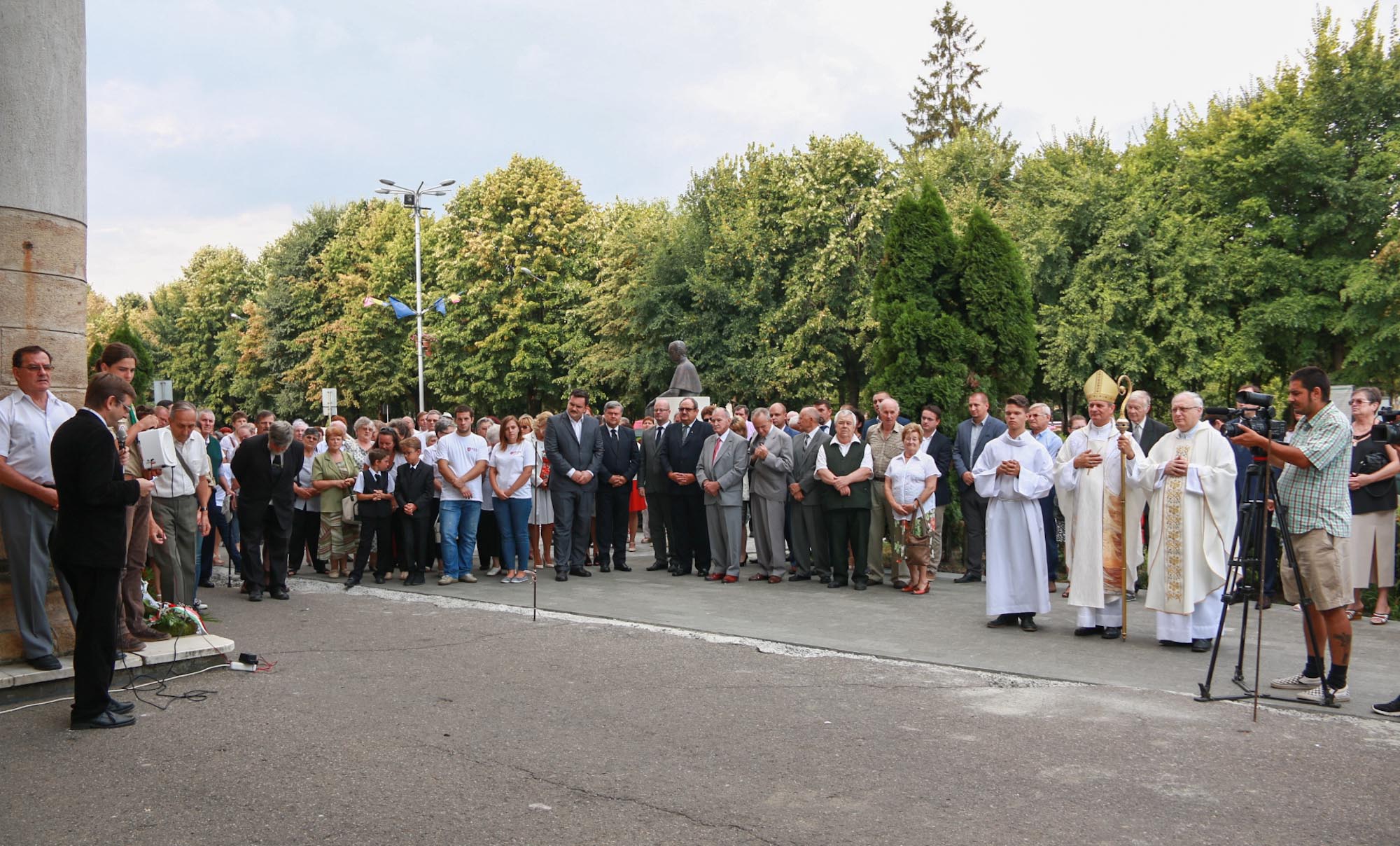 A szentmiseáldozat bemutatása után a püspök és asszisztenciája, a közigazgatási elöljárók, a különböző szervezetek-, intézmények- és közösségek képviselői, a vendégek és hívek a Székesegyház bejáratához vonultak, ahol megkoszorúzták Szent István szobrát.