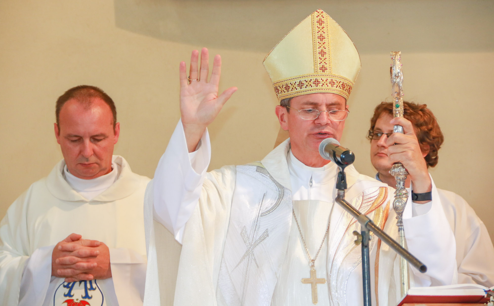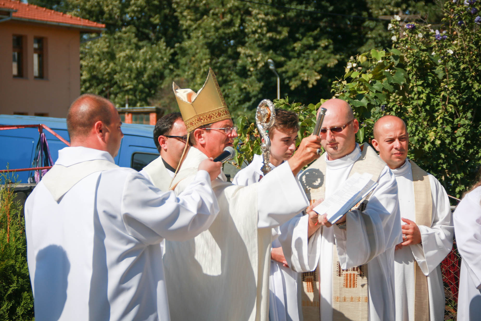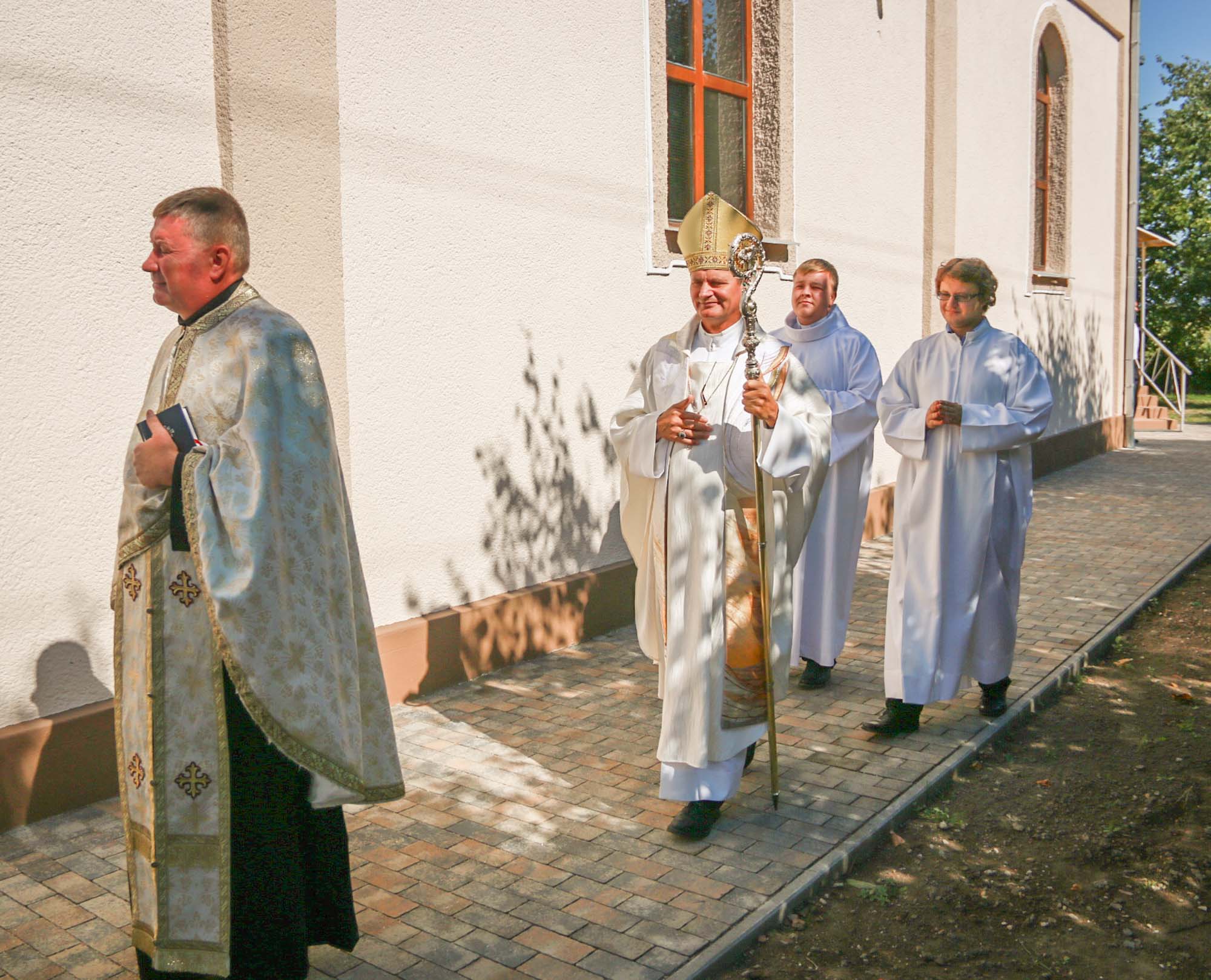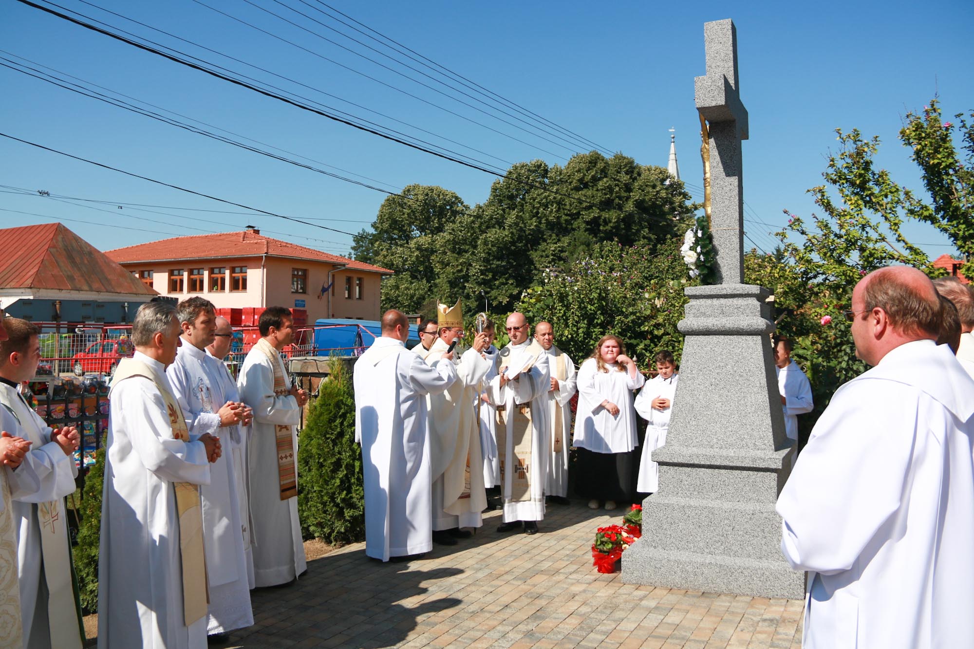 Keresztszenteléssel vette kezdetét Szűz Mária királynő ünnepén, tizenegy órától Mikola római katolikus templomának búcsúja - a szentmise bevonulása előtt Schönberger Jenő püspök megáldotta az udvaron álló, felújított kőkeresztet. Az oltárnál kifejezte a hívek irányában érzett háláját, hogy szívükön viselik a templomuk sorsát: "Köszönöm azt a sok áldozatot, amit hoztatok és hoztok plébániátokért, templomotokért, hogy kívül és belül minden szép és egyre szebb legyen. Ma a Boldogságos Szűzanyát köszönteni jöttünk. Minden búcsún hűséget fogadunk, elhoztuk szívünket, szeretteinket - akikért imádkozunk - gondjainkat, de az örömeinket is. Kérjük, hogy a Boldogságos Szűzanya legyen a továbbadója a mi kéréseinknek Isten felé. Hiszen ha Isten általa lépett a világba, akkor nagyon helyes, hogy mi pedig, a kéréseinket általa küldjük a mindenható Atyánk felé"- mondta bevezetőjében a püspök atya.
