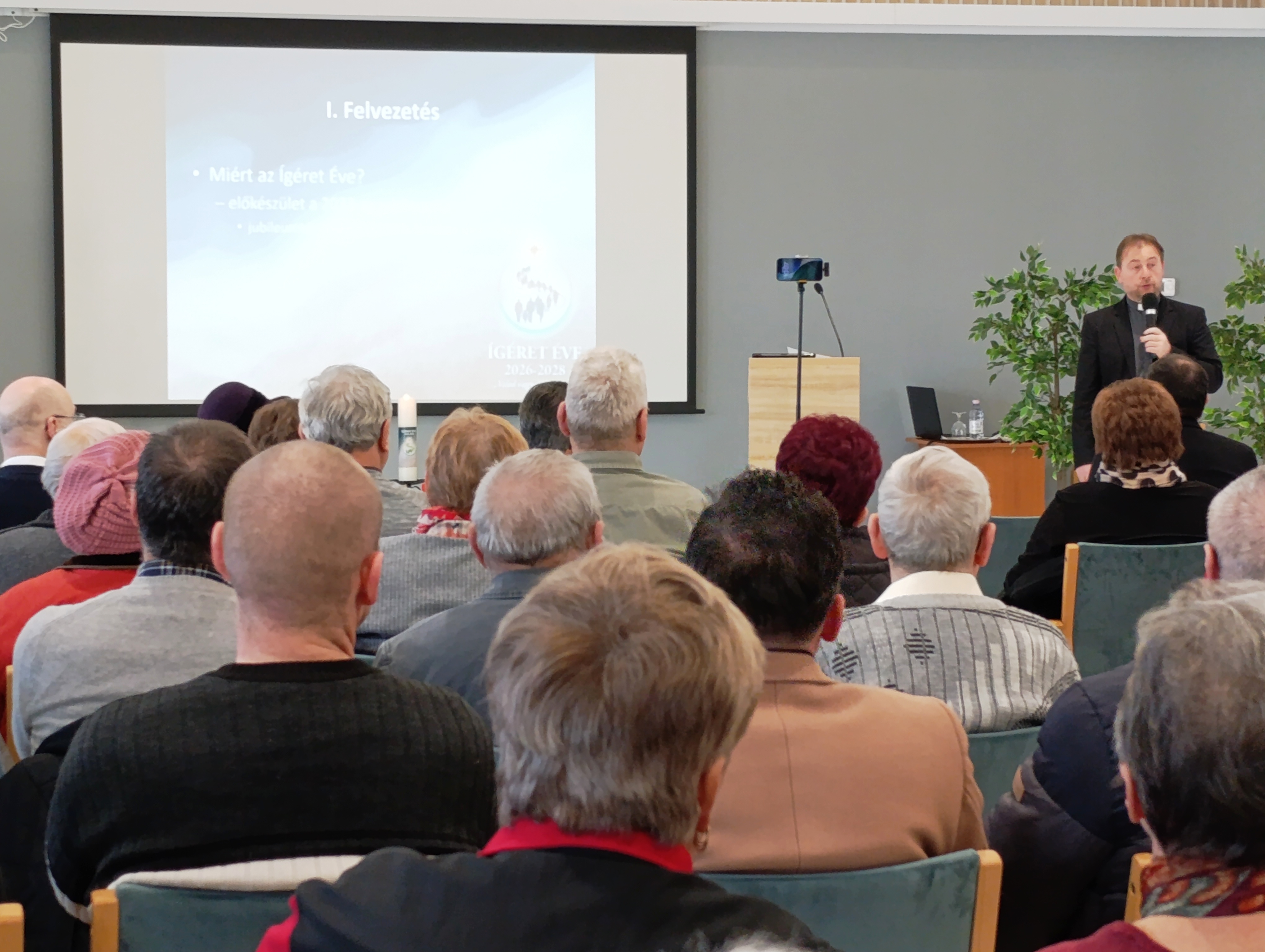 Másnap, közel nyolcvanan gyűltek össze egyháztanácsosok és lelkipásztorok, továbbá mintegy harminc érdeklődő, a szatmárnémeti Megmaradás Házában, ahol Schönberger Jenő megyéspüspök tartott előadást az „Ígéret Éve” első témájáról, melynek címe: „Ádám és Éva – az ember teremtettsége és hivatása” volt. Az előadás előtt Ft. Ilyés Csaba, általános helynök, bemutatta a résztvevőknek az egyházmegye hároméves lelkipásztori tervét.
