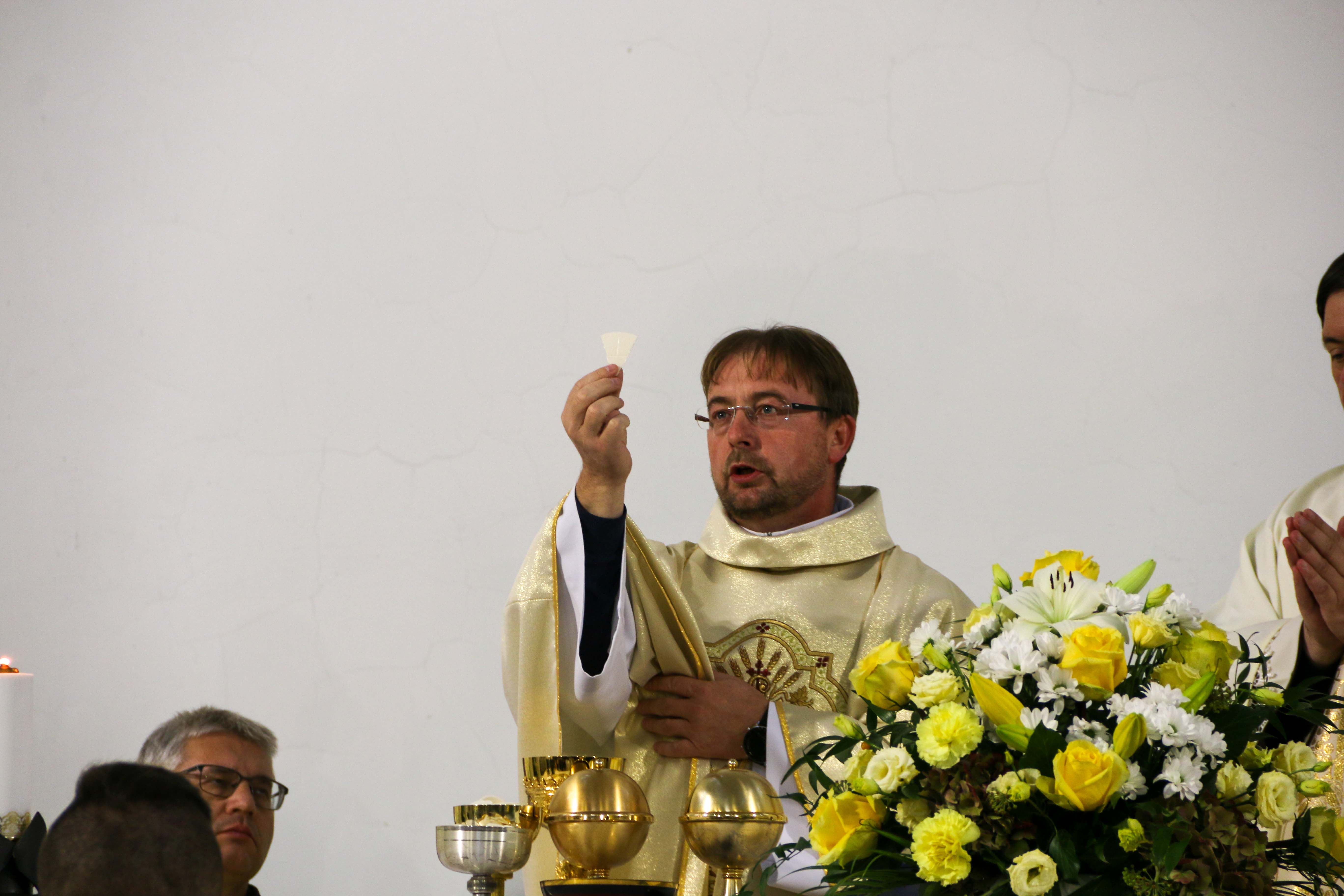 „Pünkösd alkalmával az apostolok együtt imádkoznak Máriával, tehát ez a közösség továbbra is fennáll, mert Isteni tervet képvisel. Jézus Krisztus akaratából közösségben vagyunk, ez a közösség segít bennünket tovább, az üdvösség útján. És a templom, amelynek most a felszentelését ünnepeljük, segít bennünket, hogy ezt a közösséget felismerjük. Talán nagyon sokszor azt gondoljuk, amikor a kereszt alatt vagyunk, hogy egyedül vagyunk, hogy senki nem figyel ránk. De Isten mindig ott van. Mindannyian a magunk életének a küzdelmeit vívjuk. Ezeket a küzdelmeket, örömöket jó megosztani, mert ezáltal tudunk másoknak segíteni, és ezáltal tudjuk a magunk, és mások hitét megerősíteni” – zárta homíliáját Ft. Ilyés Csaba.